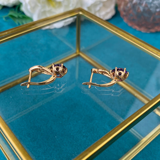 Apzeltīti auskari ar violetu dekoratīvu kristālu