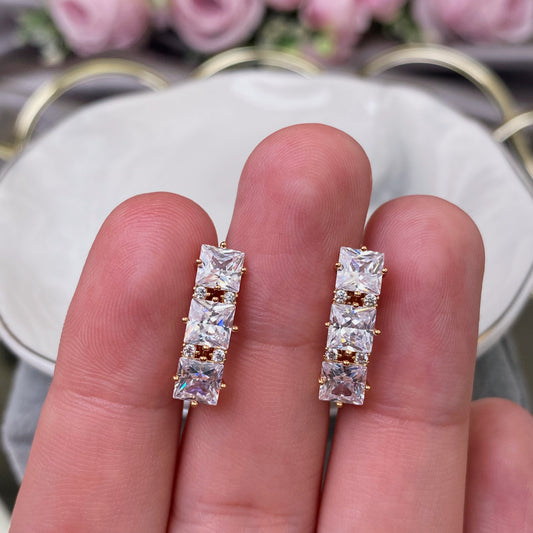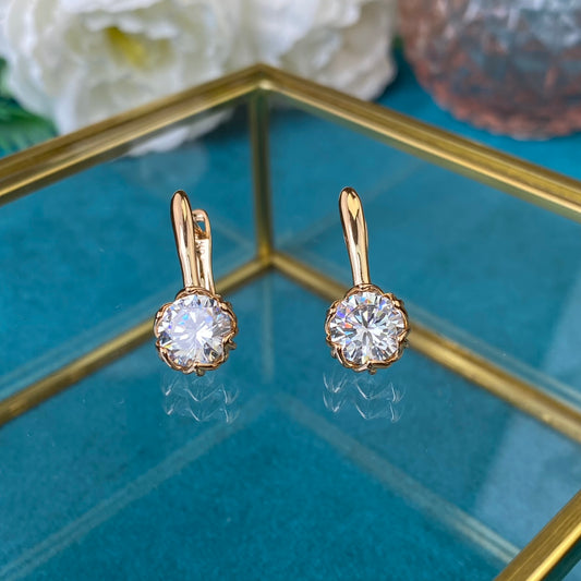 Apzeltīti auskari ar baltiem dekoratīviem kristāliem