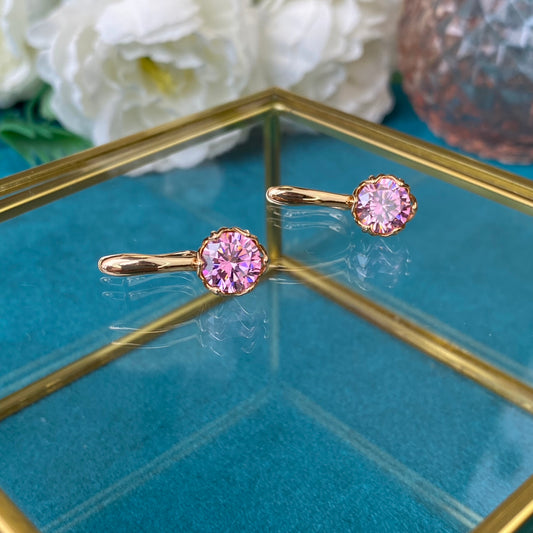 Apzeltīti auskari ar gaiši rozā dekoratīvu kristālu