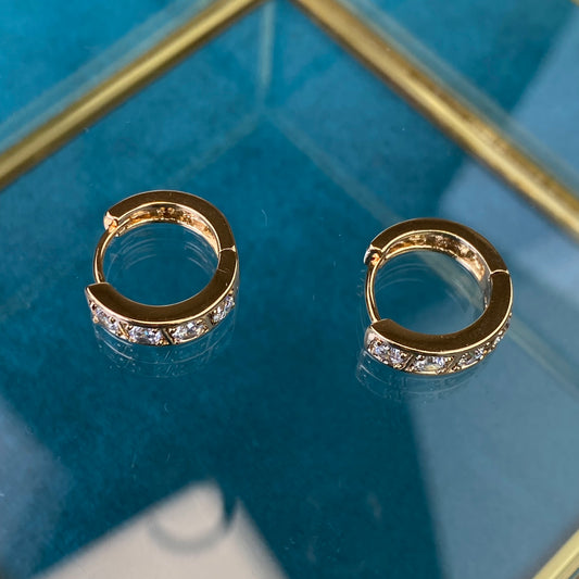 Apzeltīti auskari- riņķīši ar dekoratīviem kristāliem