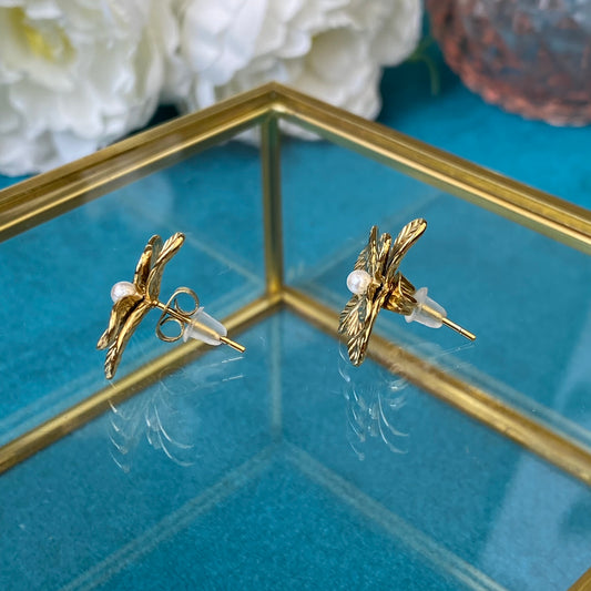 Apzeltīti auskari "Puķīte" ar Upes Pērli