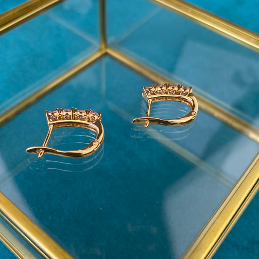 Apzeltīti auskari ar rozā dekoratīviem kristāliem