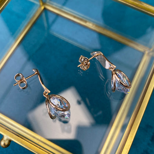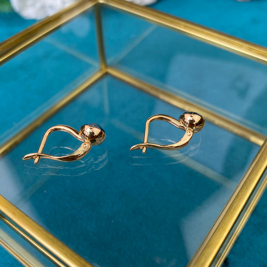 Apzeltīti auskari ar tumši zilu dekoratīvu kristālu