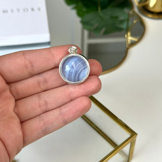 Zilā Mežģīņu Ahāta sudraba kulons (Ahāts, 925 proves sudrabs)