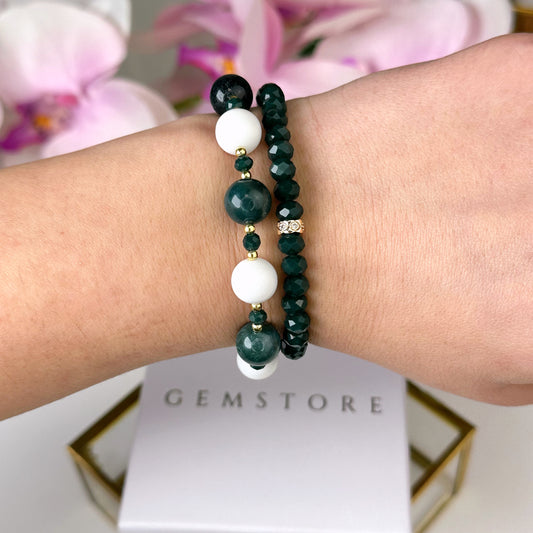 Sūnu Ahāta un dekoratīvo kristālu rokassprādžu komplekts (Ahāts, 10mm. Veiksmei, mieram un harmonijai.)