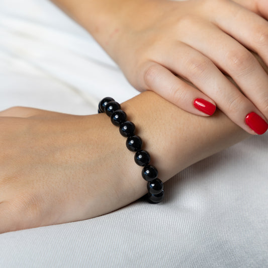 Melnā Turmalīna rokassprādze (Melnais Turmalīns/ Šerls, 10mm. Aizsardzībai, naudai un veiksmei.)