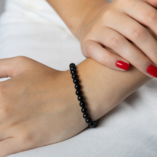 Melnā Turmalīna rokassprādze (Melnais Turmalīns/ Šerls, 6mm. Aizsardzībai, naudai un veiksmei.)
