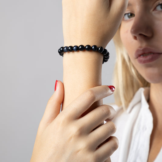 Zilā Mežģīņu Ahāta rokassprādze (Ahāts, 6mm. Veiksmei, veselībai un harmonijai.)