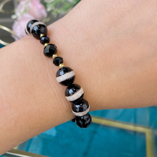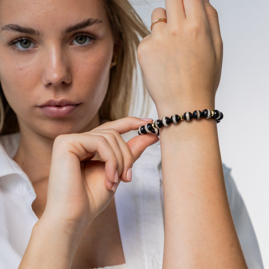 Dzi Ahāta rokassprādze (Ahāts, slīpēta forma, 10mm. Veiksmei, veselībai un harmonijai.)