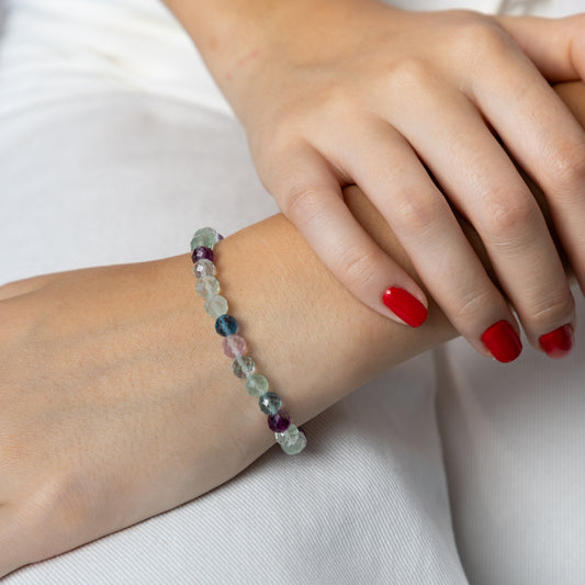 Fluorīta rokassprādze (Fluorīts, slīpēta forma, 6mm. Mieram, aizsardzībai un enerģijai.)