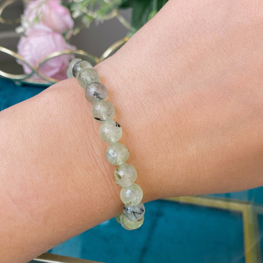 Prenīta rokassprādze (Prenīts, slīpēta forma,8mm. Enerģijai, priekam un sapņu piepildīšanai.)