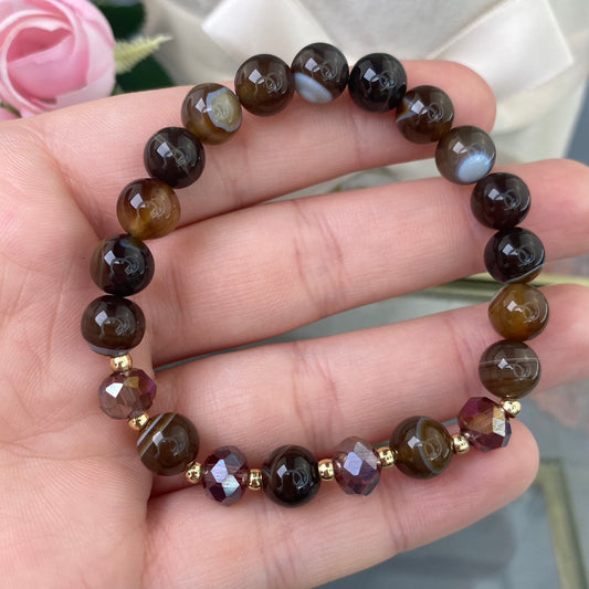 Ahāta rokassprādze ar dekoratīviem kristāliem (Ahāts 8mm)