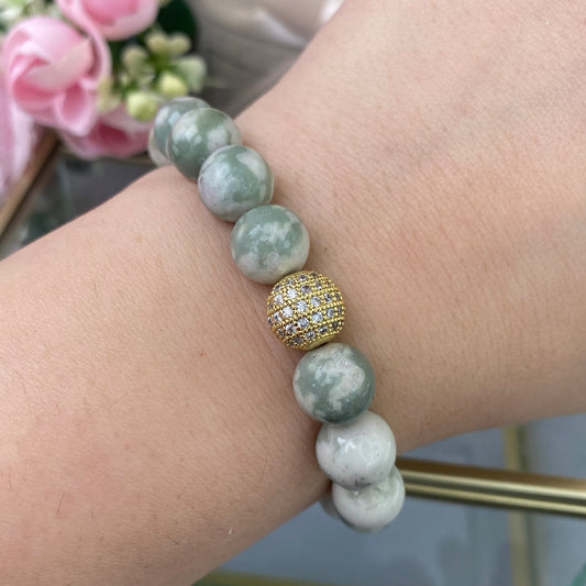 Žadeīta rokassprādze ar dekoratīvu bumbiņu (Žadeīts 10mm)