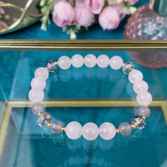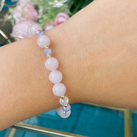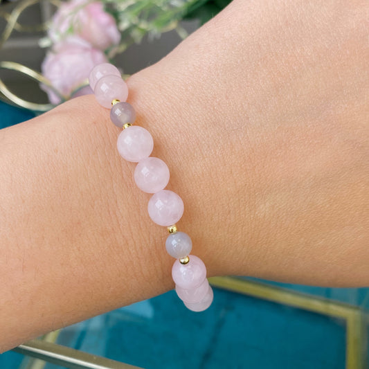 Mēnessakmens un Madagaskaras Rozā Kvarca rokassprādze (Mēnessakmens, Rozā Kvarcs, 8mm. Mīlestībai, izaugsmei un pārliecībai.)