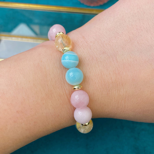 Madagascar Rose Quartz bracelet with Citrine and Agate (Madagascar Rose Quartz, Citrine, Agate,10mm.For love, money and luck)