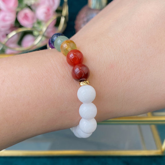 7 Chakra bracelet with Jadeite (Jadeite tinted,8mm)