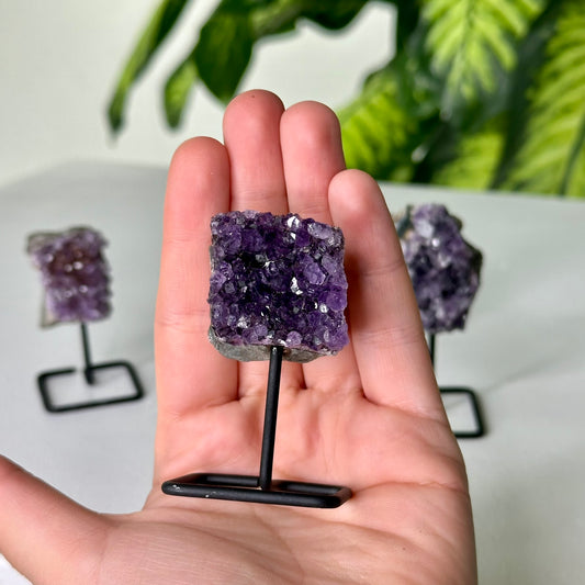 Ametista drūza uz statīva XS izmērs (Ametists, Brazīlija, statīvi 6-8.5cm h)