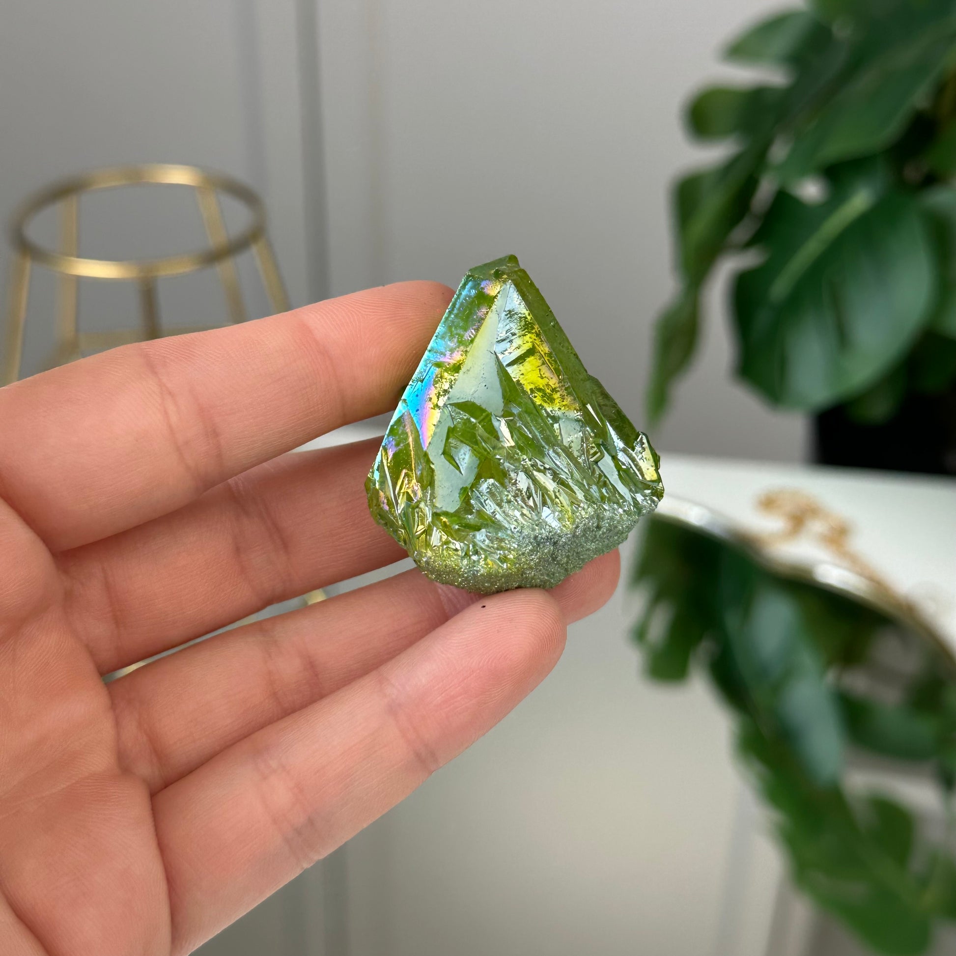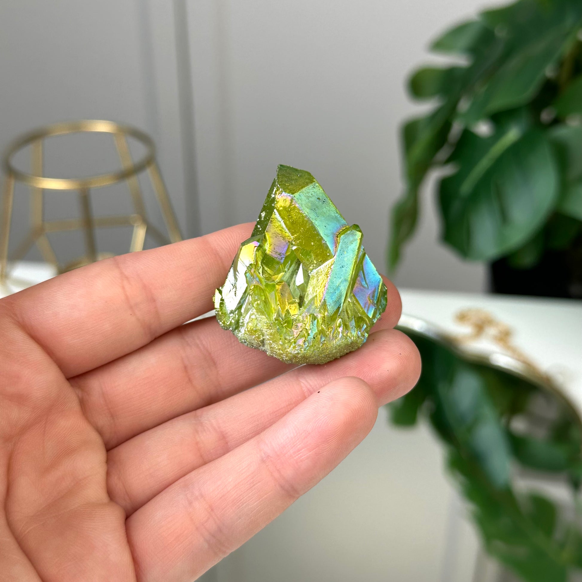 AURA KVARCS- ir dabisks caurspīdīgs Kvarcs, kurš savu mirdzošo krāsu iegūst karsēšanas rezultātā. Kvarca kristāls tiek ievietots uzkarsētā vakuma kamerā un pēc tam kamerā tiek ievadīts iztvaicēts metāls, kurš nogulsnējas uz kristāla virsmas radot zaigojošu metālisku spīdumu. Aura Kvarca krāsa ir atkarīga no izmantotā metāla veida.