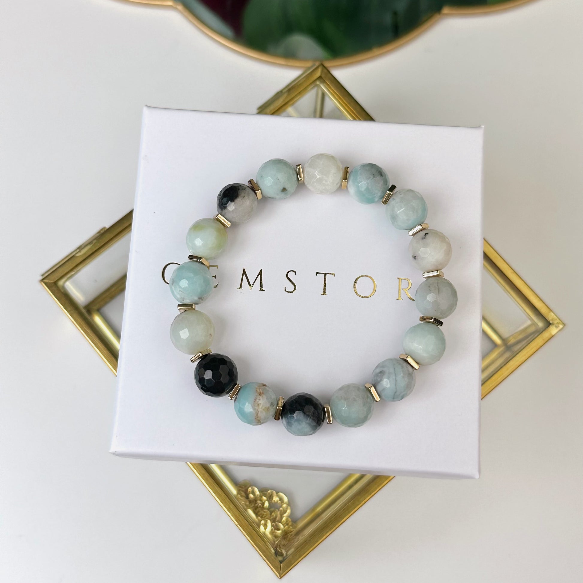 Amazonīta rokassprādze (Amazonīts, slīpēts, 10mm. Mieram, pašapziņai un sapņu piepildīšanai.)