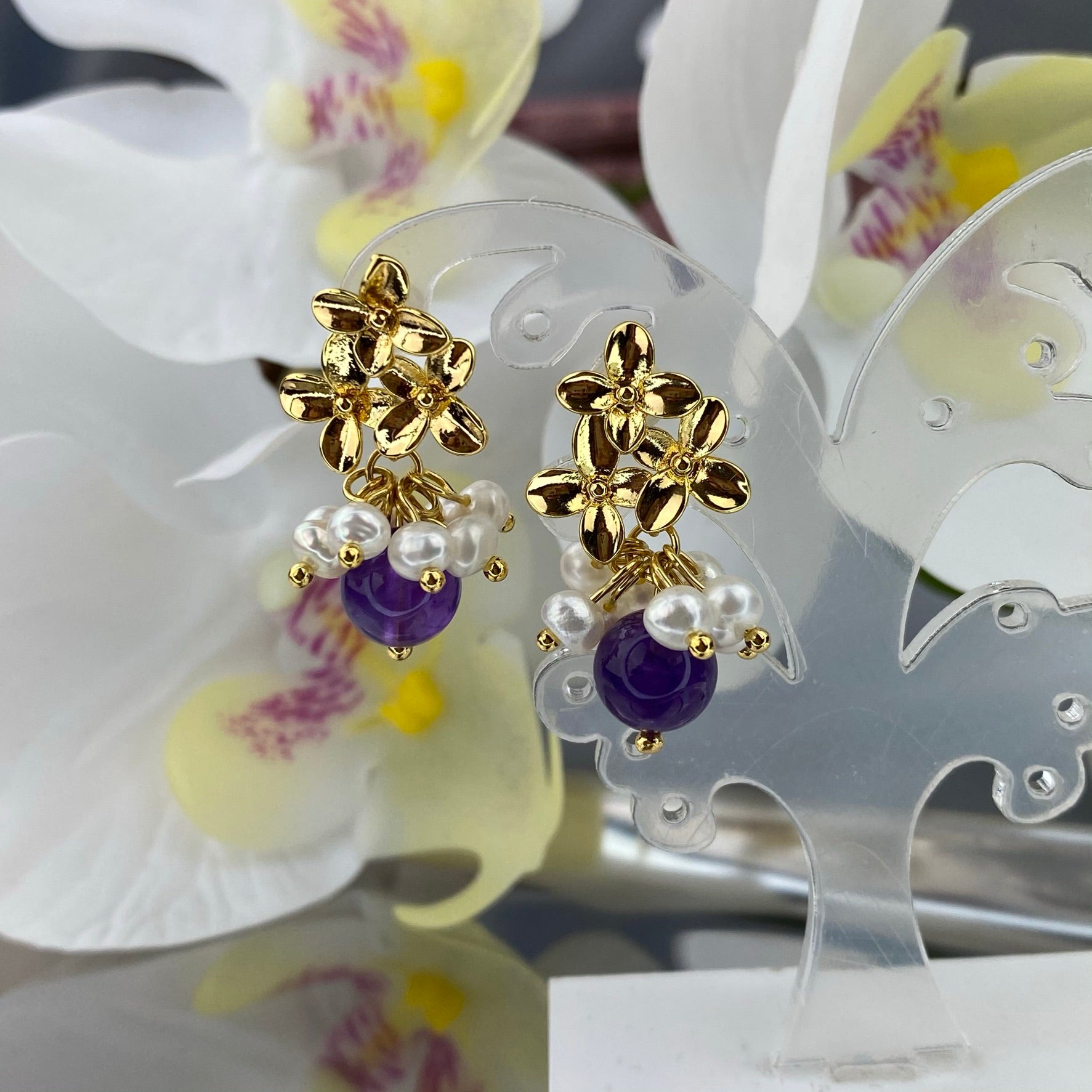 Amethyst and River pearl earrings (Amethyst, River pearls)