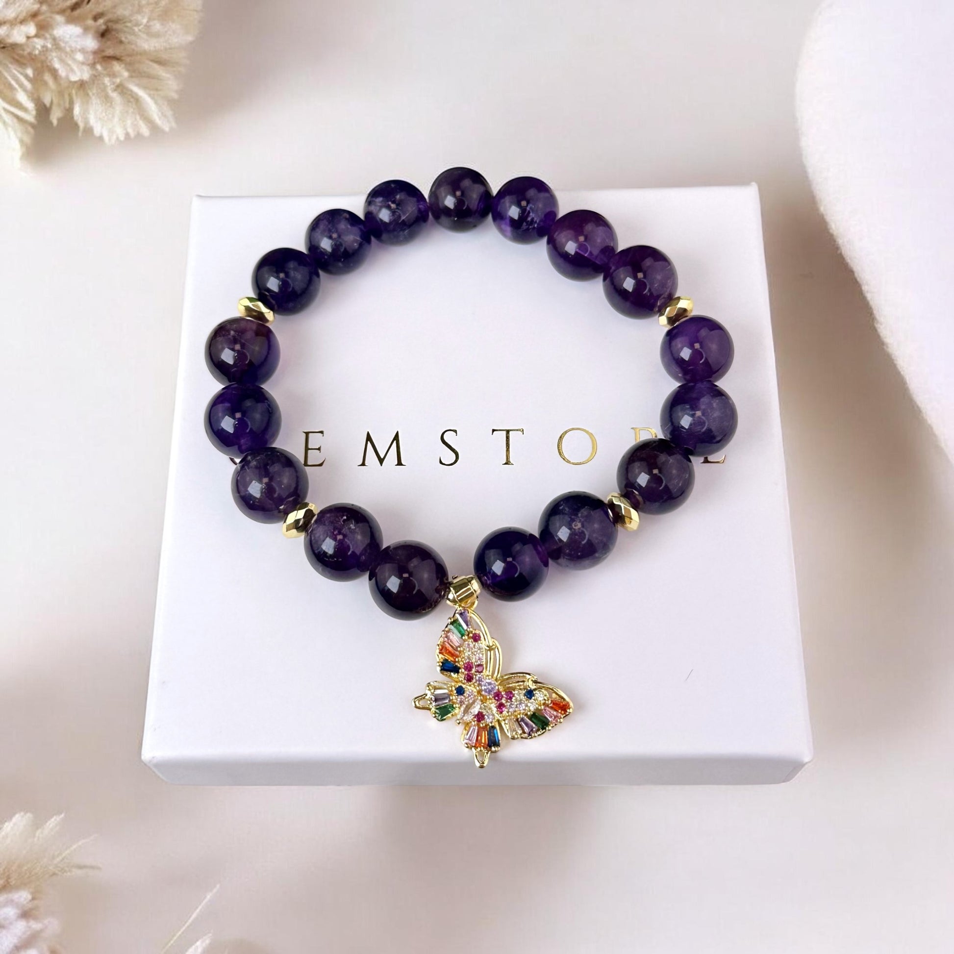 Ametista rokassprādze ar taireņa piekariņu(Ametists,10mm. Veiksmei, harmonijai un aizsardzībai.)