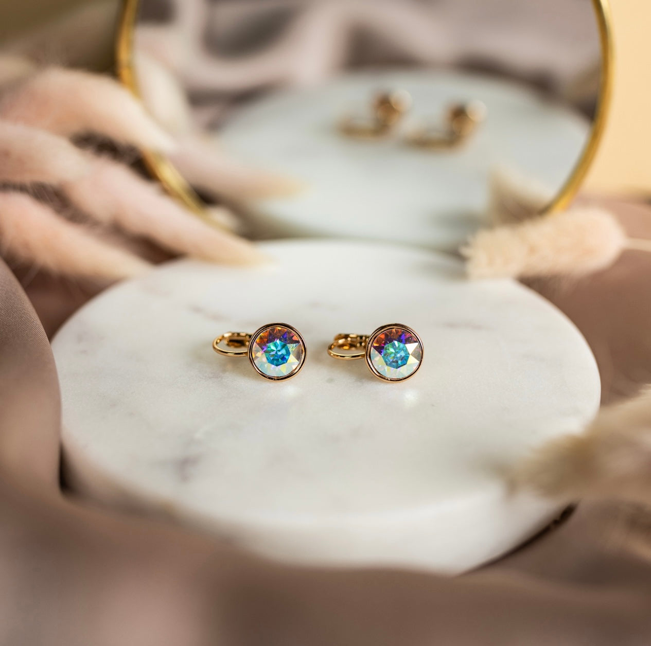 Apzeltīti auskari ar hameleona krāsas kubisko cirkoniju