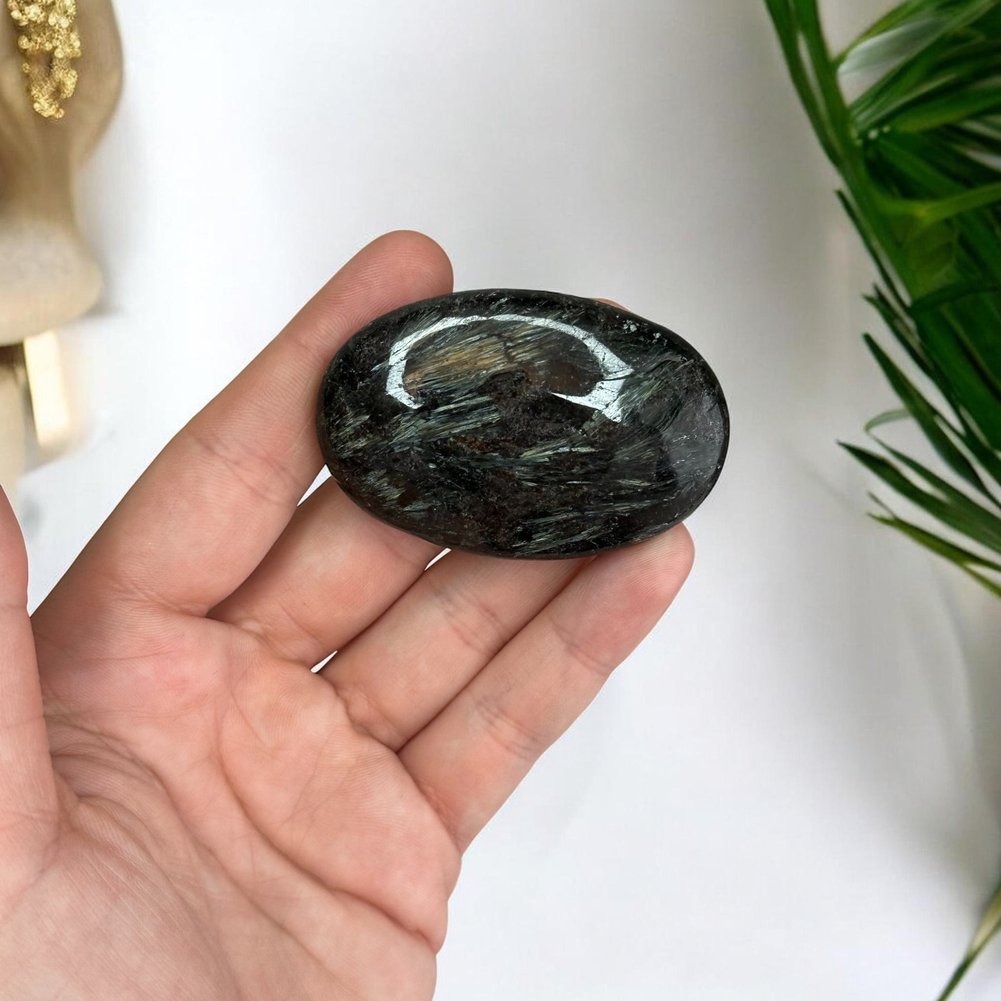 Astrofilīts ir patiesi unikāls un vizuāli iespaidīgs dabas veidojums, kas uzreiz piesaista uzmanību ar savu neparasto izskatu. Tas ir tumšs-brūni melns vai pat dziļi melns akmens, kuru rotā mirdzošas, zeltaini bronzīgas un vietām arī viegli zilganas svītriņas un staraini raksti. Šīs svītras atgādina saules starus vai zvaigžņu uzliesmojumus, piešķirot akmenim īpašu, gandrīz maģisku spīdumu.