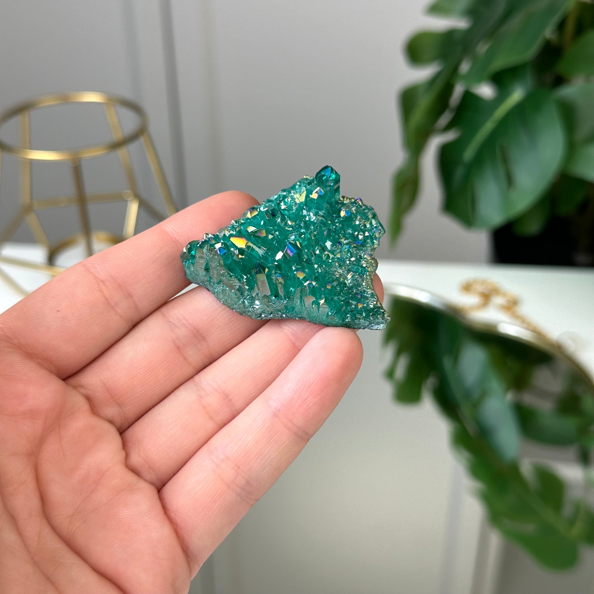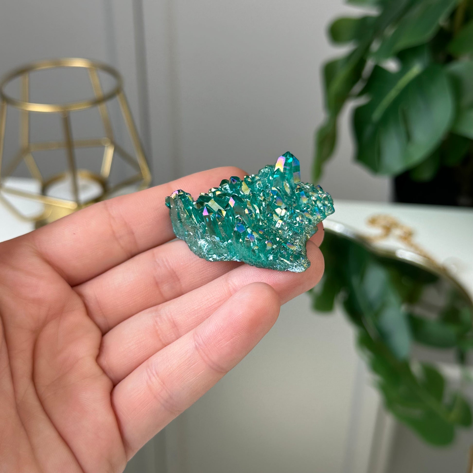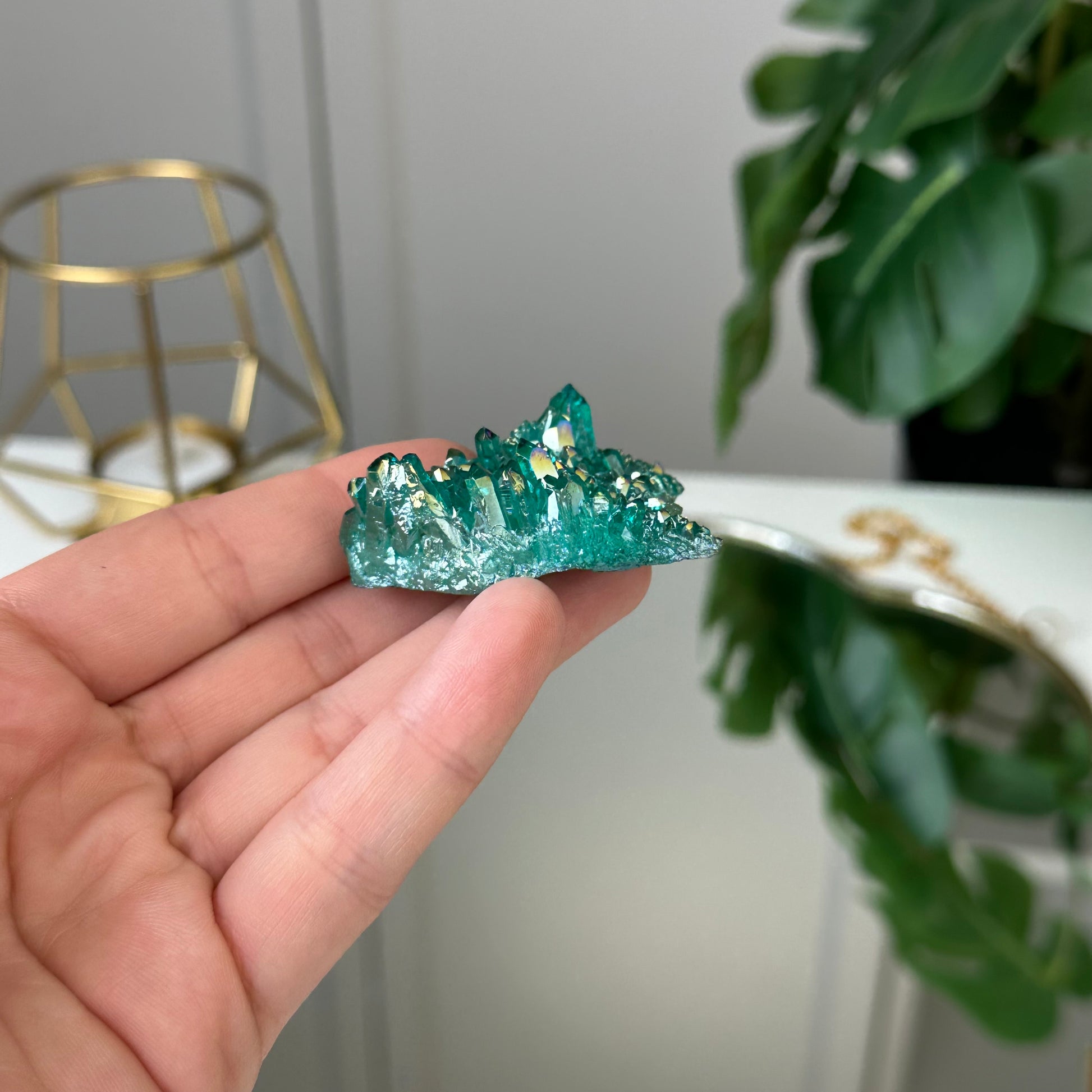 AURA KVARCS- ir dabisks caurspīdīgs Kvarcs, kurš savu mirdzošo krāsu iegūst karsēšanas rezultātā. Kvarca kristāls tiek ievietots uzkarsētā vakuma kamerā un pēc tam kamerā tiek ievadīts iztvaicēts metāls, kurš nogulsnējas uz kristāla virsmas radot zaigojošu metālisku spīdumu. Aura Kvarca krāsa ir atkarīga no izmantotā metāla veida.