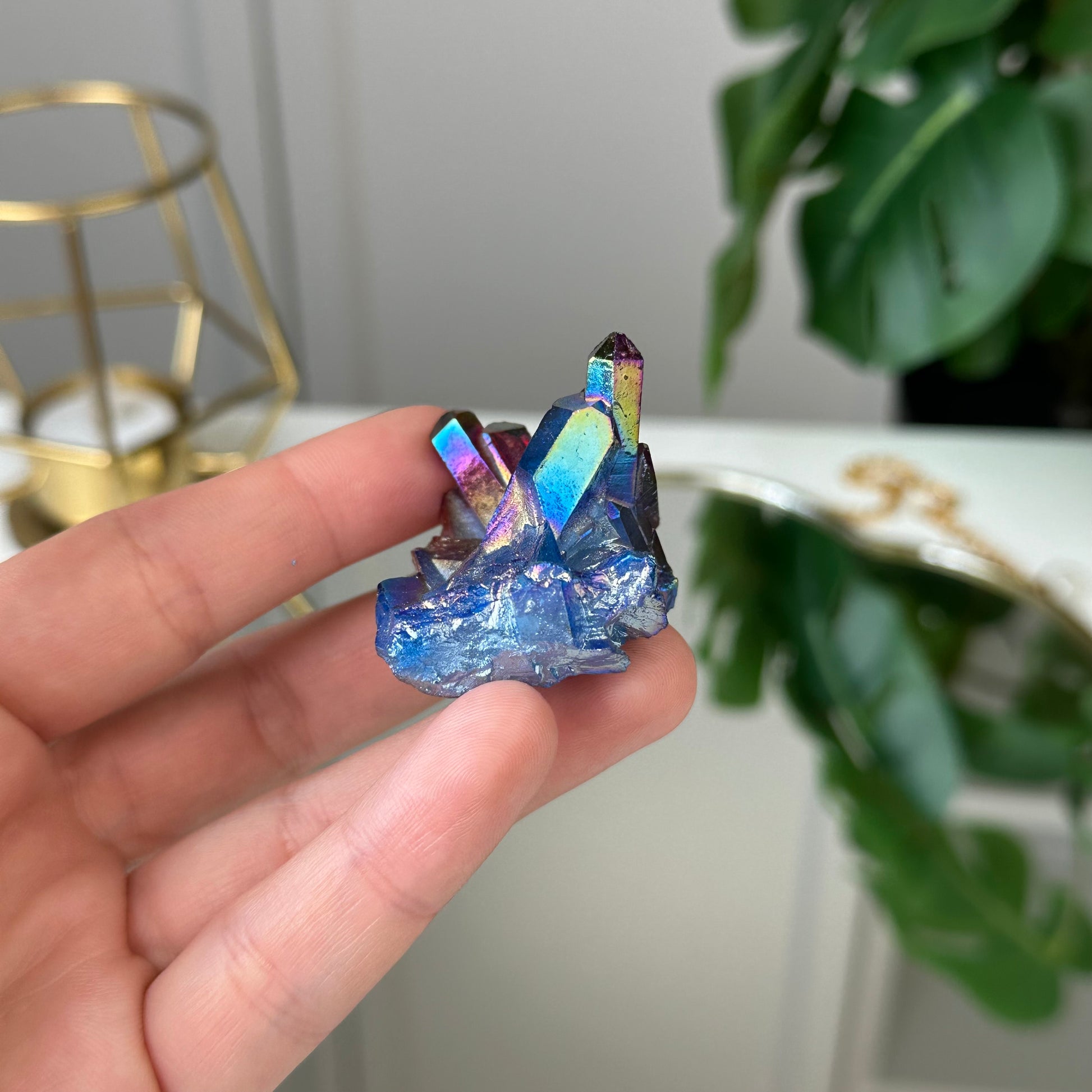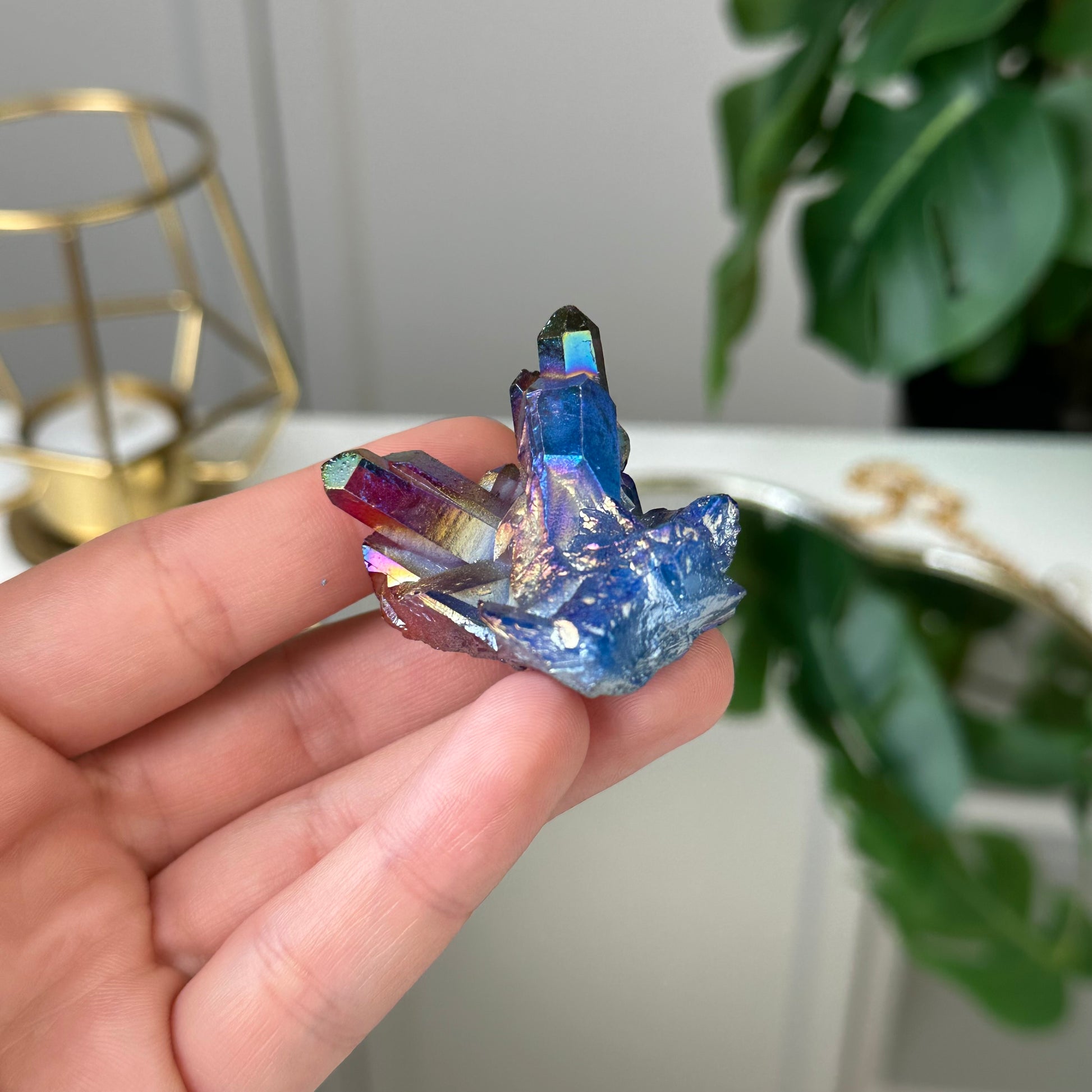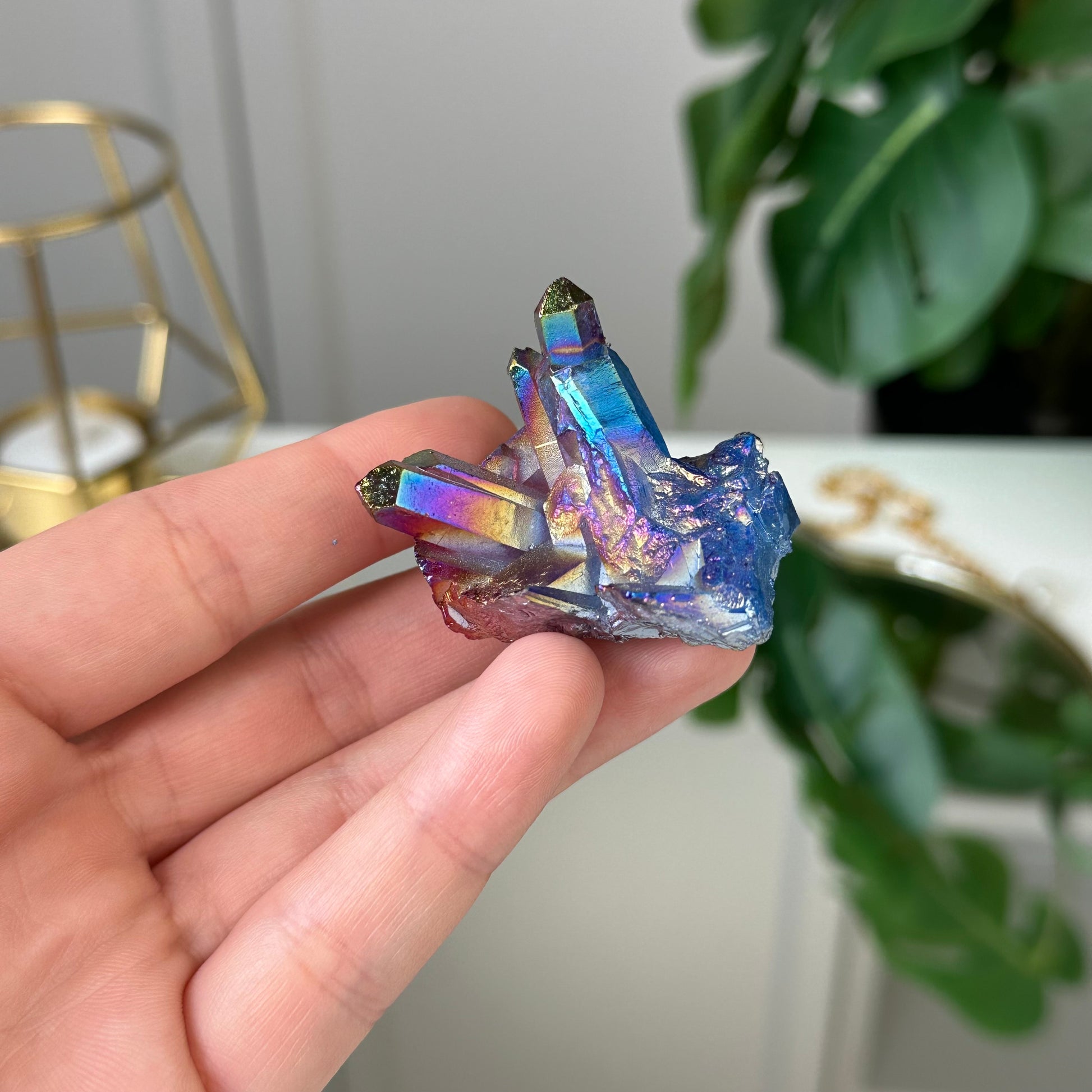 AURA KVARCS- ir dabisks caurspīdīgs Kvarcs, kurš savu mirdzošo krāsu iegūst karsēšanas rezultātā. Kvarca kristāls tiek ievietots uzkarsētā vakuma kamerā un pēc tam kamerā tiek ievadīts iztvaicēts metāls, kurš nogulsnējas uz kristāla virsmas radot zaigojošu metālisku spīdumu. Aura Kvarca krāsa ir atkarīga no izmantotā metāla veida.