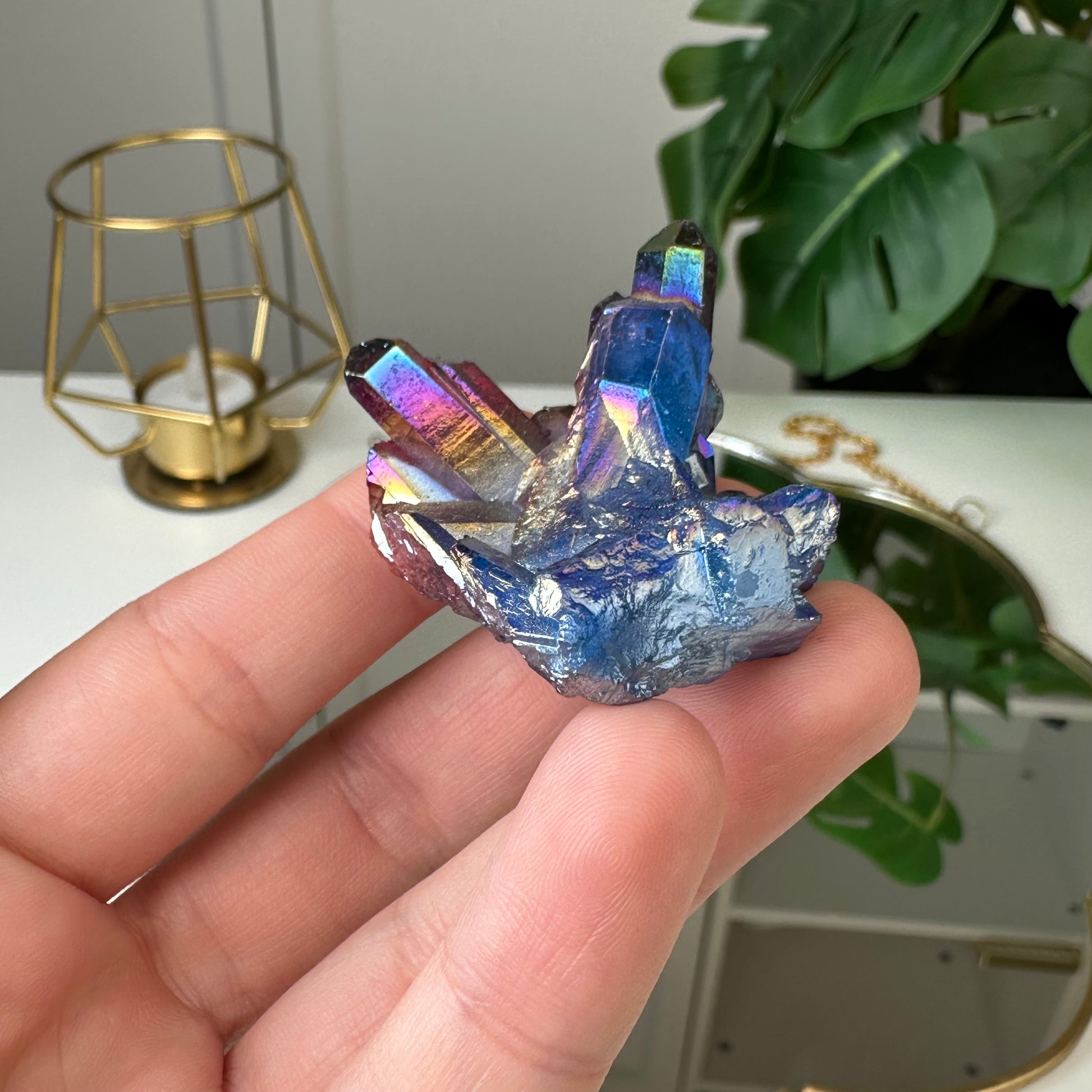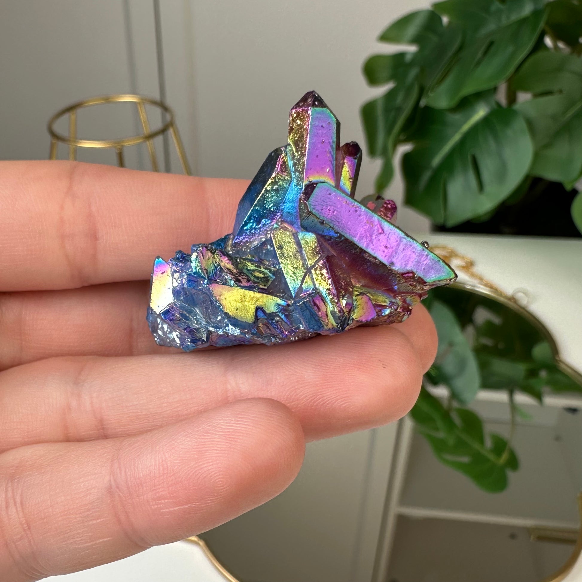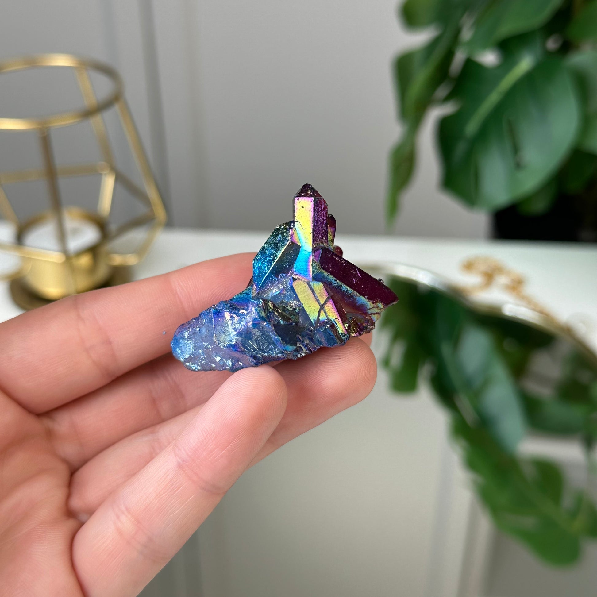 AURA KVARCS- ir dabisks caurspīdīgs Kvarcs, kurš savu mirdzošo krāsu iegūst karsēšanas rezultātā. Kvarca kristāls tiek ievietots uzkarsētā vakuma kamerā un pēc tam kamerā tiek ievadīts iztvaicēts metāls, kurš nogulsnējas uz kristāla virsmas radot zaigojošu metālisku spīdumu. Aura Kvarca krāsa ir atkarīga no izmantotā metāla veida.