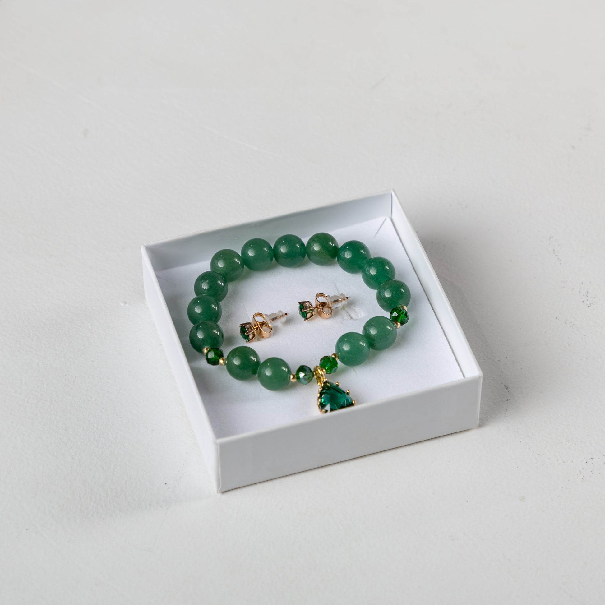 *Komplektā ietilpst-rokassprādze, auskari un dāvanu kastīte.