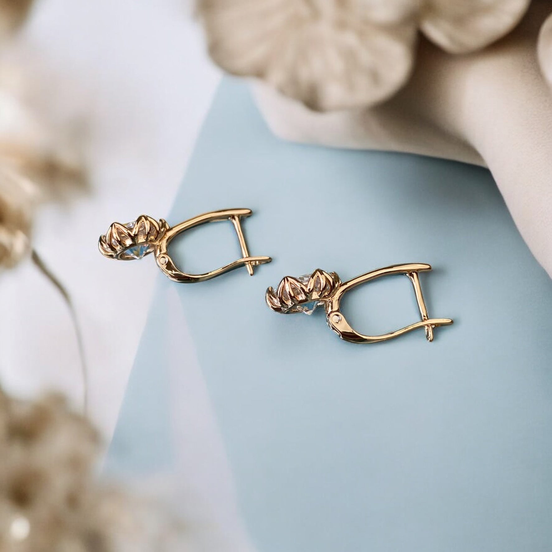 Gold Plated Stainless Steel Earrings with decorative crystal