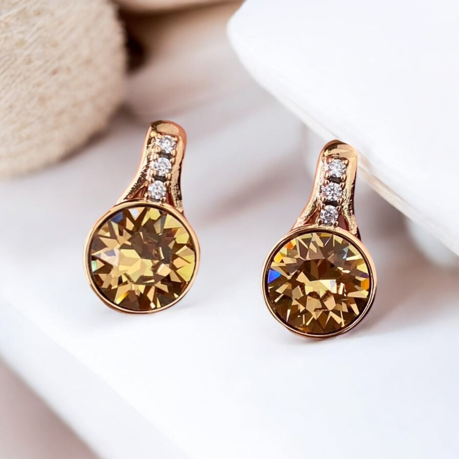 Gold Plated Stainless Steel Earrings with yellow decorative crystals