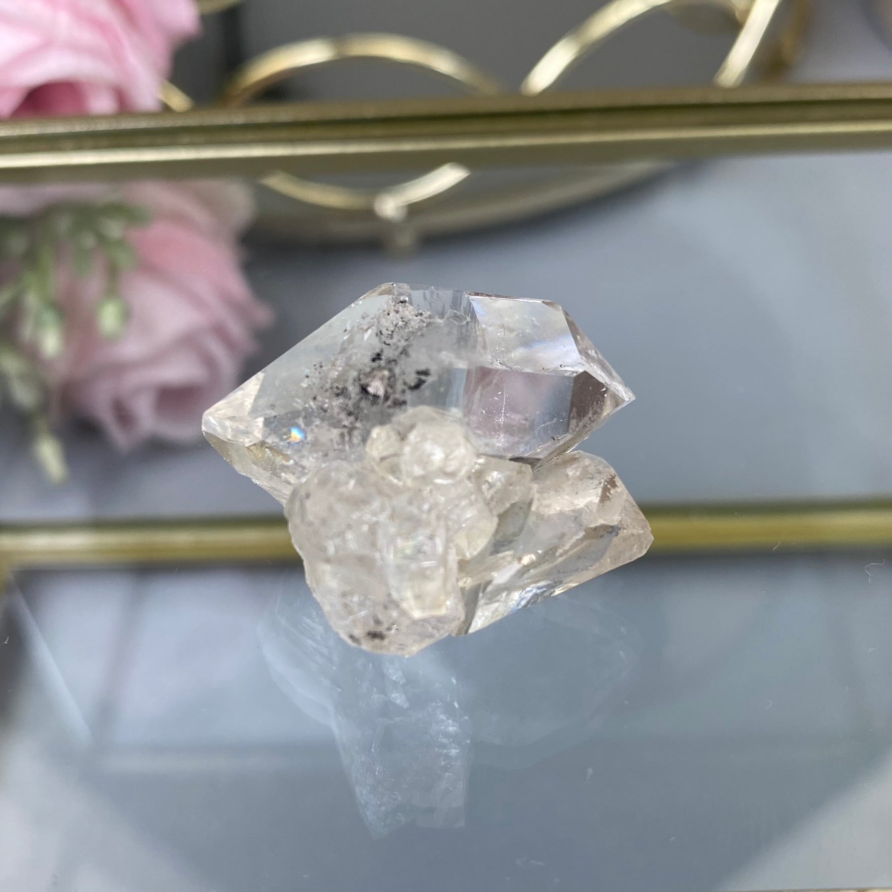 Herkimer Diamonds are the strongest grade of Crystal Quartz, exclusively mined at the Herkimer Mines in the New York area. Not only are they extremely rare, but their exceptional clarity, diamond-like brilliance, and powerful healing properties make these crystals some of the most valuable and sought-after crystals in the world. The Herkimer diamond is approximately 500 million years old. These magical crystals have a high life force vibration which makes them especially healing and very useful for meditation.
