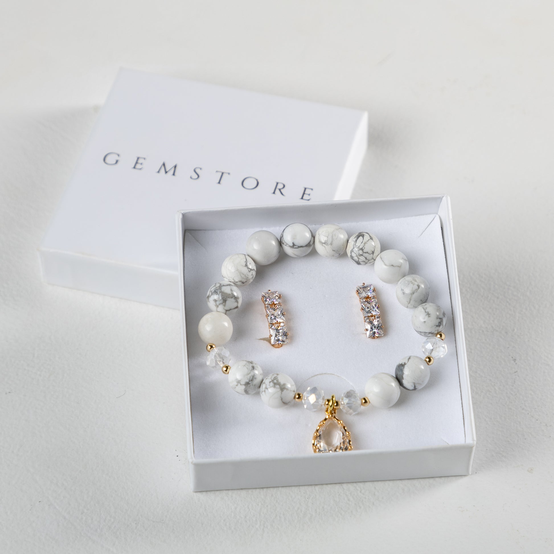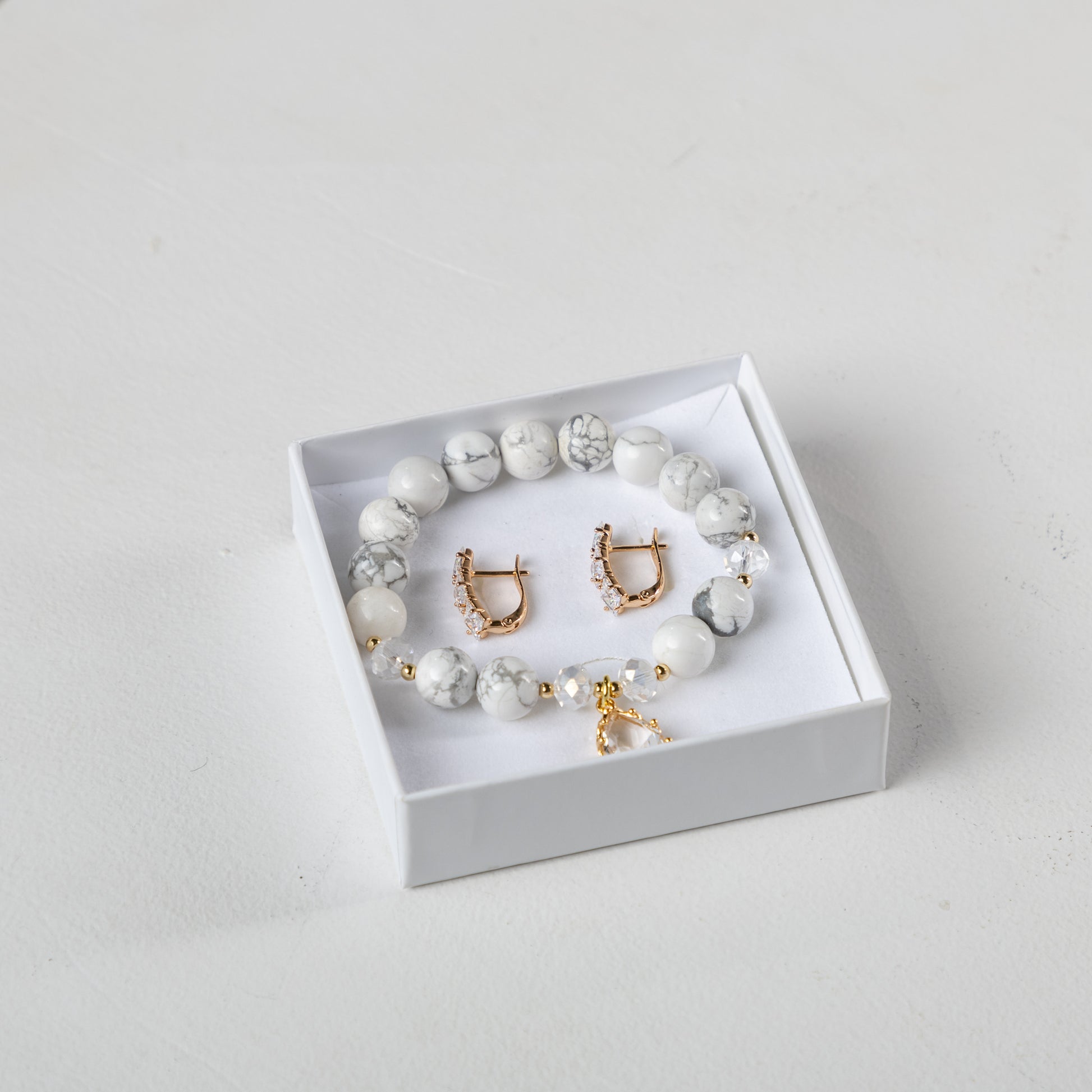 *Komplektā ietilpst-rokassprādze, auskari un dāvanu kastīte.