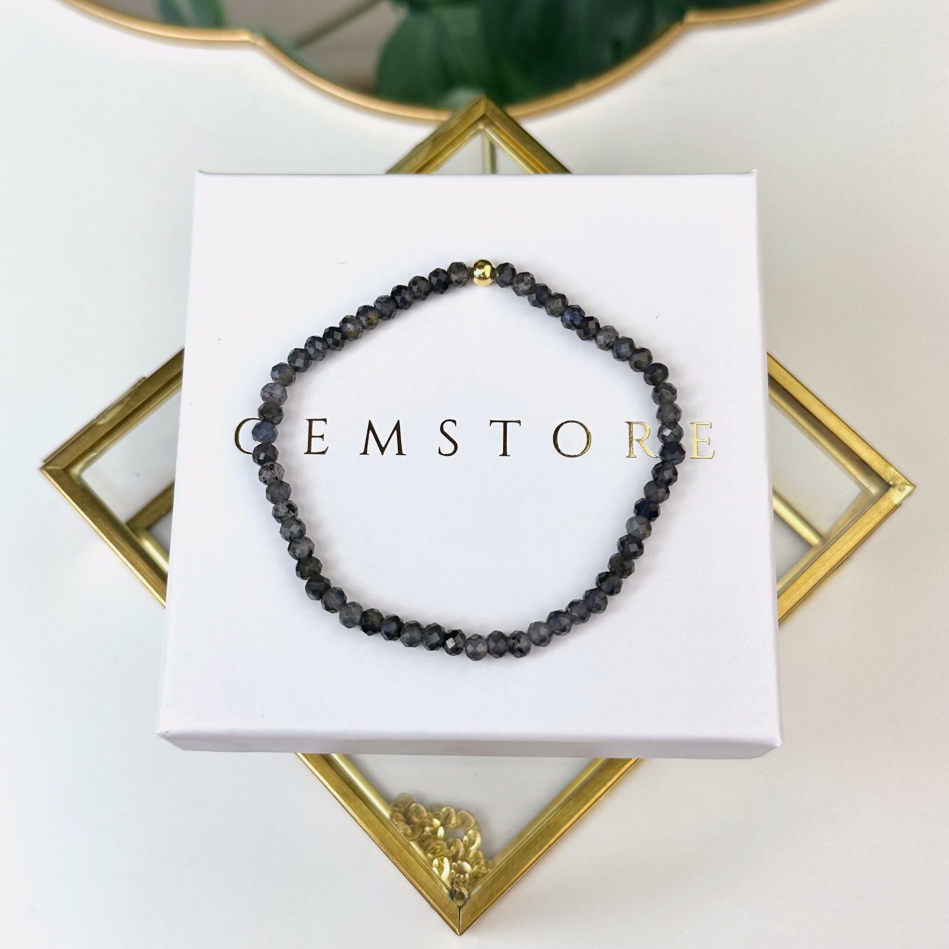 Iolīta rokassprādze (Iolīts/Kordierīts, slīpēts, 3mm. Iedvesmai, radošumam un iekšējam spēkam.)