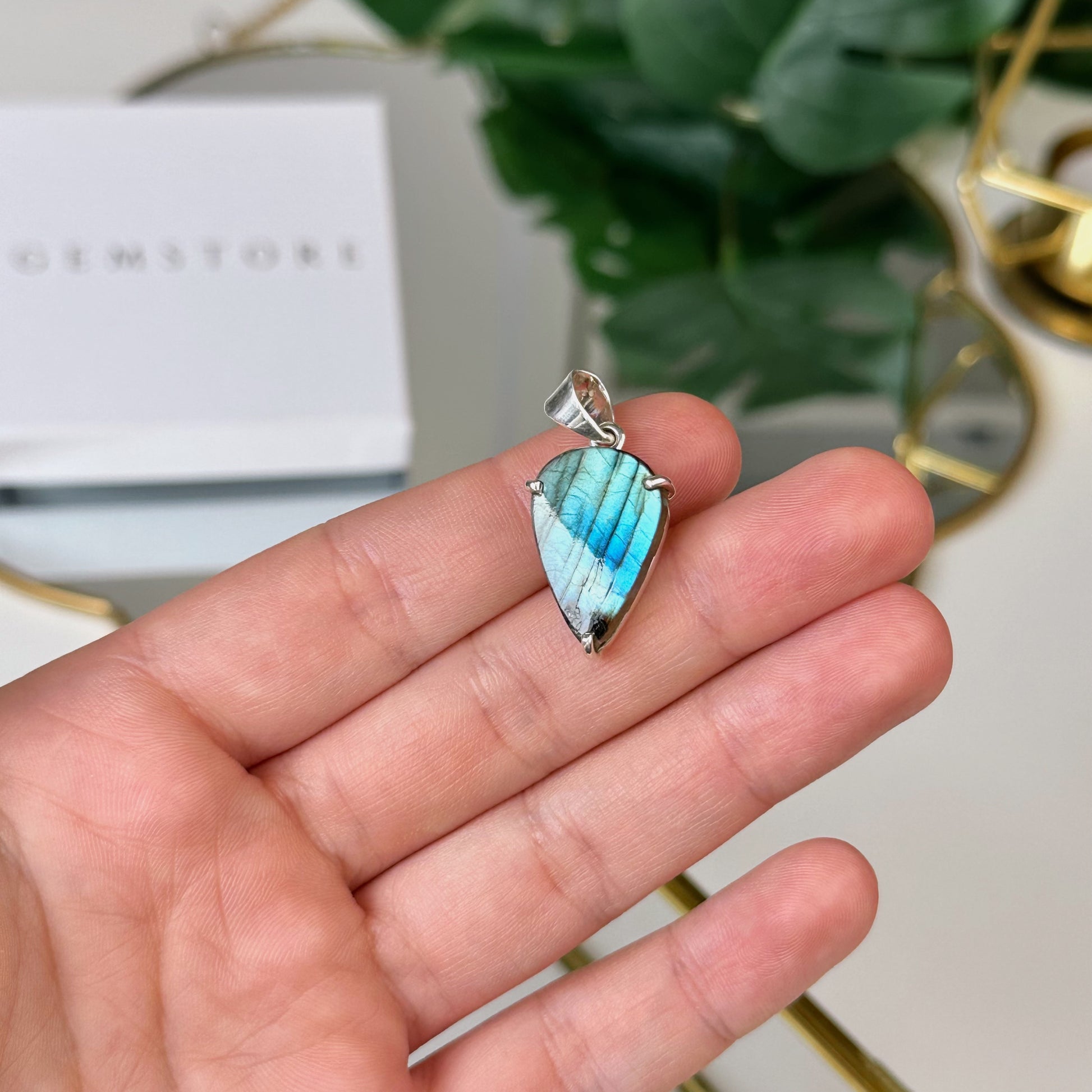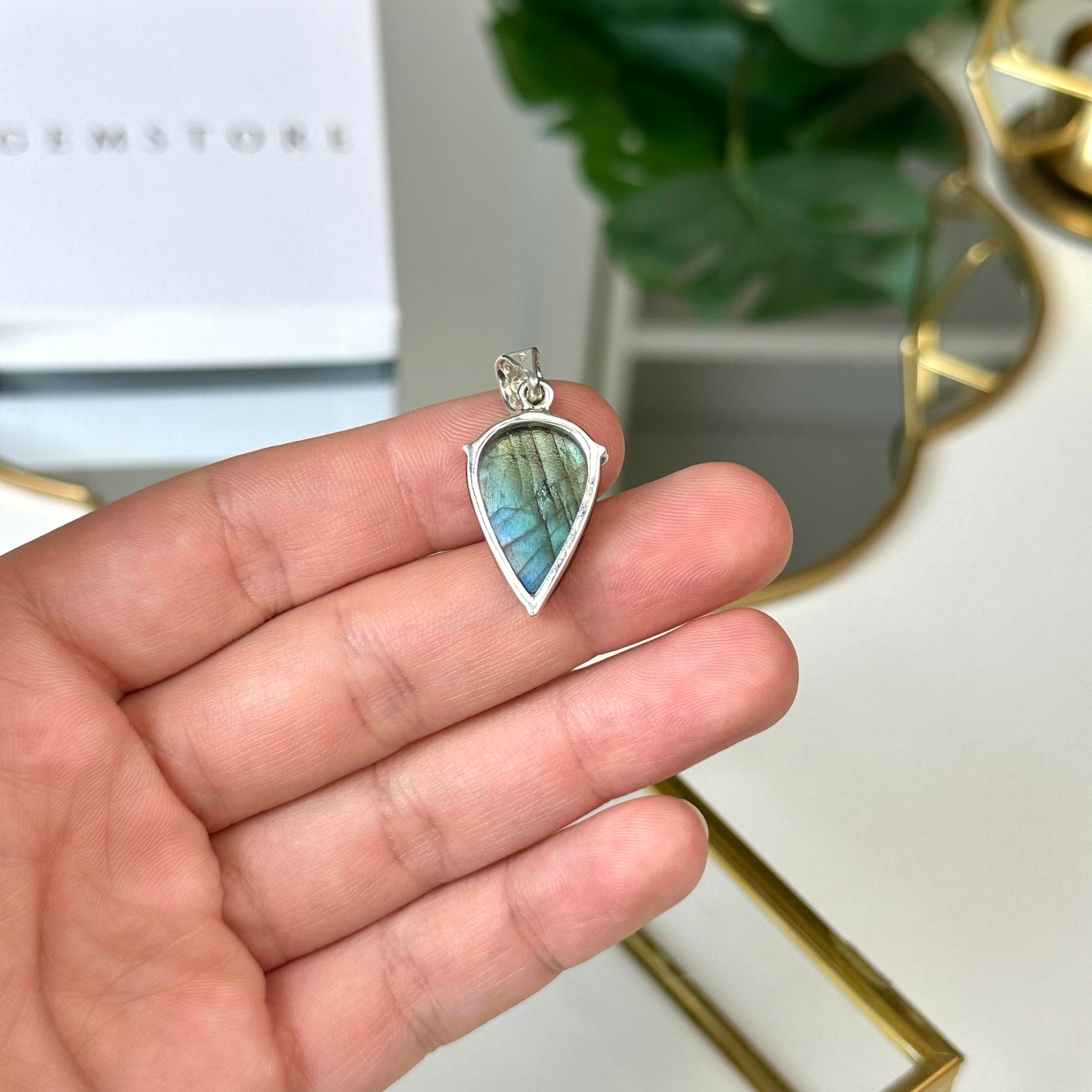 *Tiks nosūtīts attēlā redzamais Labradorīta kulons.