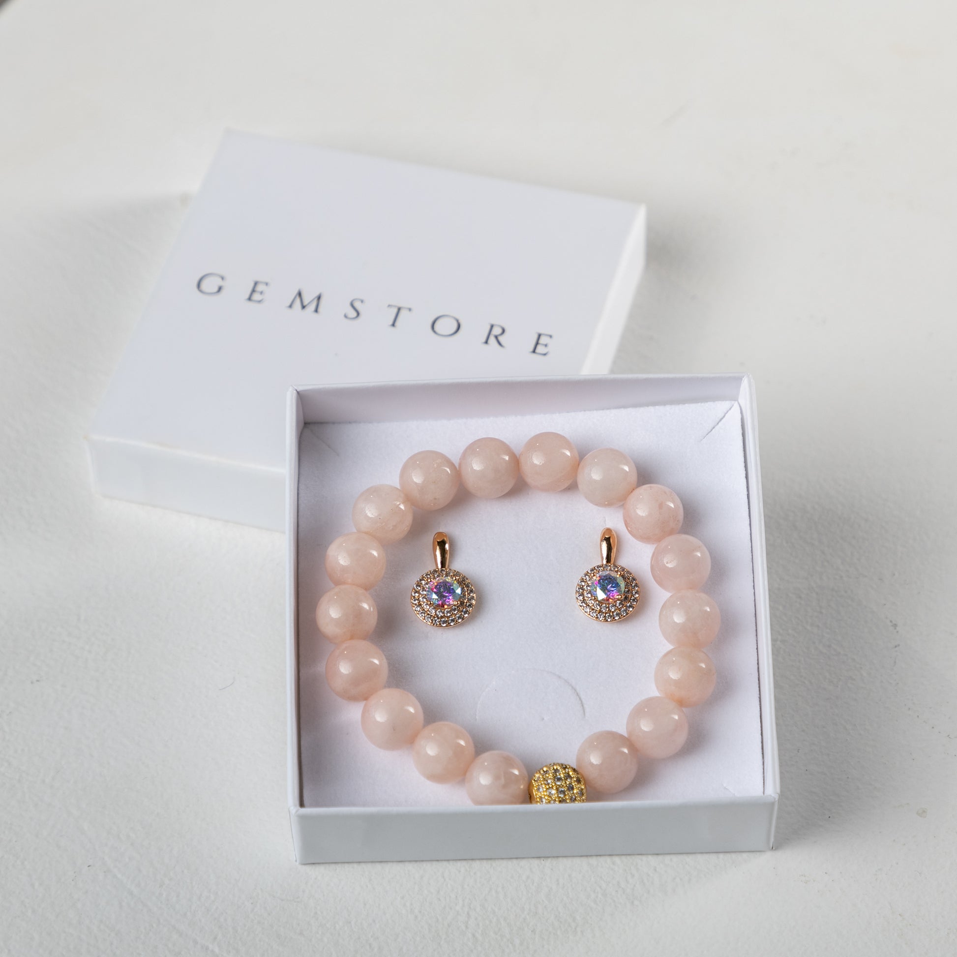 Madagascar Rose Quartz bracelet set with decorative crystals earrings