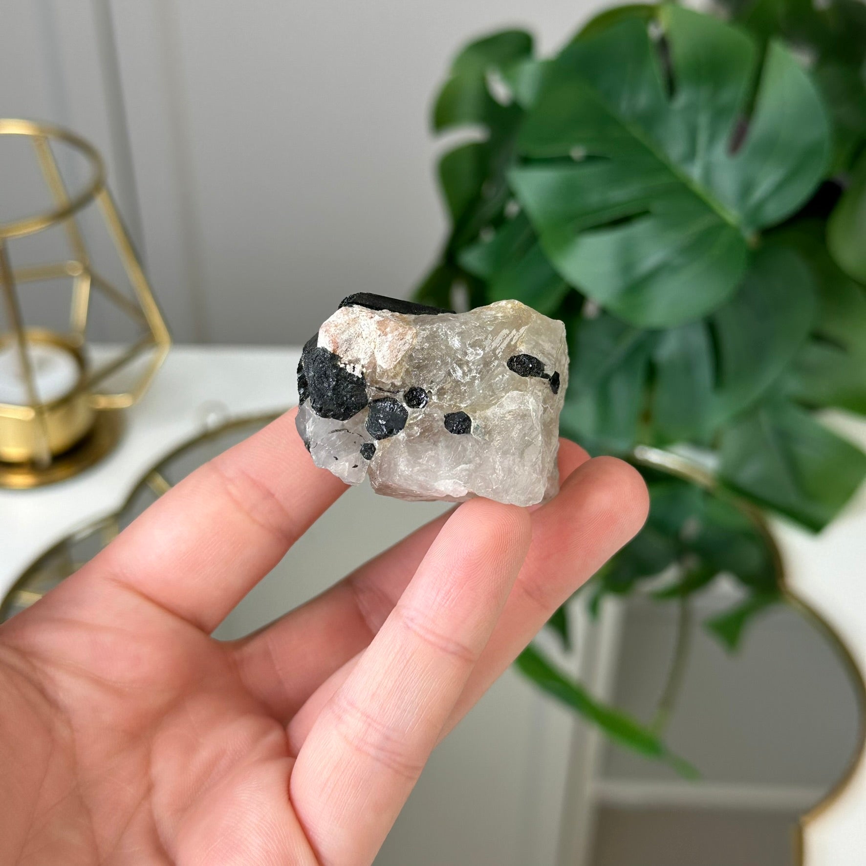 Melnais Turmalīns Kvarcā 80g. (Turmalīns, Kvarcs)