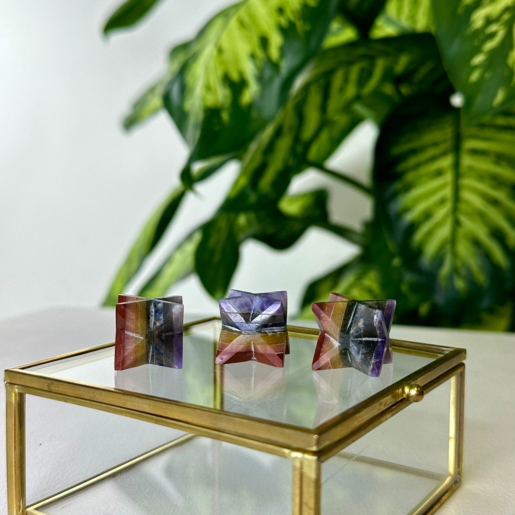 The Merkaba of the Seven Chakras is a set of seven crystals cut and shaped together. This Merkaba is designed to work with the seven chakras of the human body.