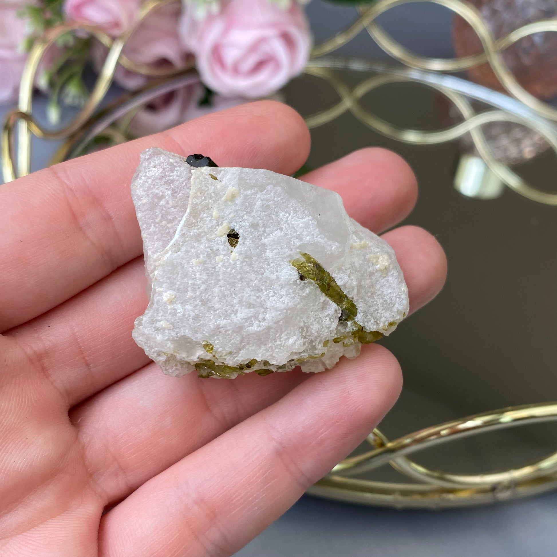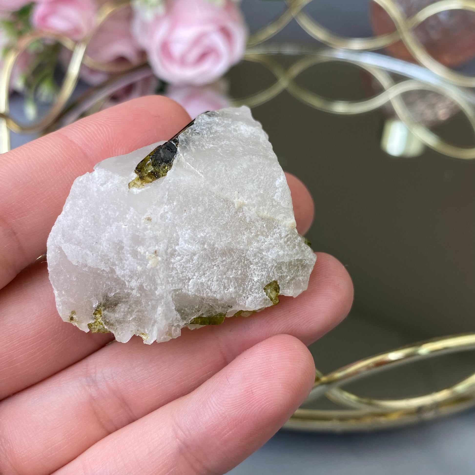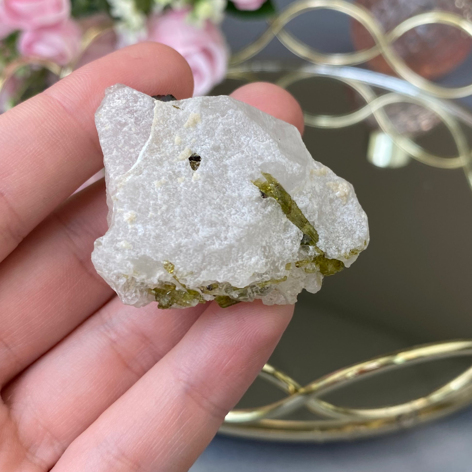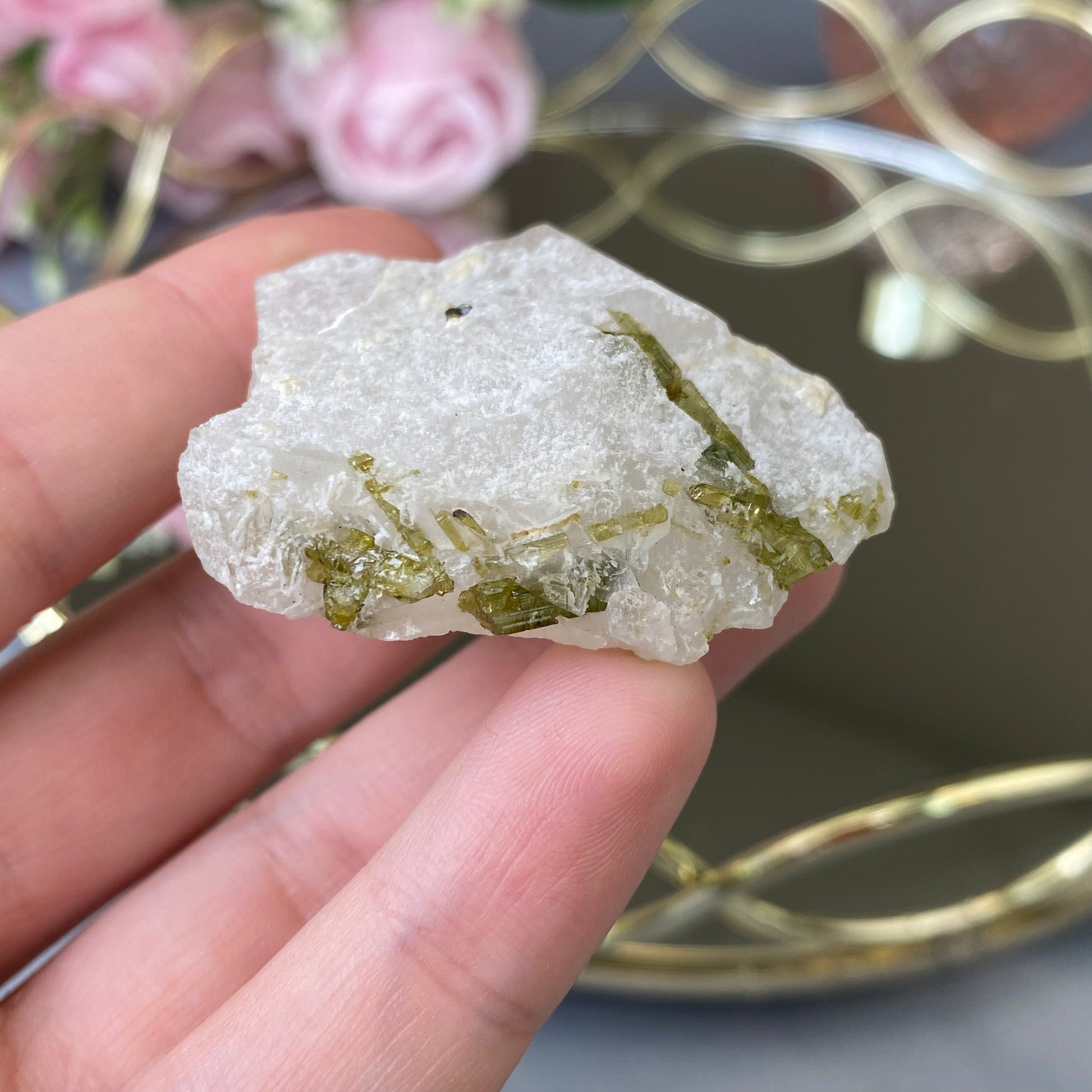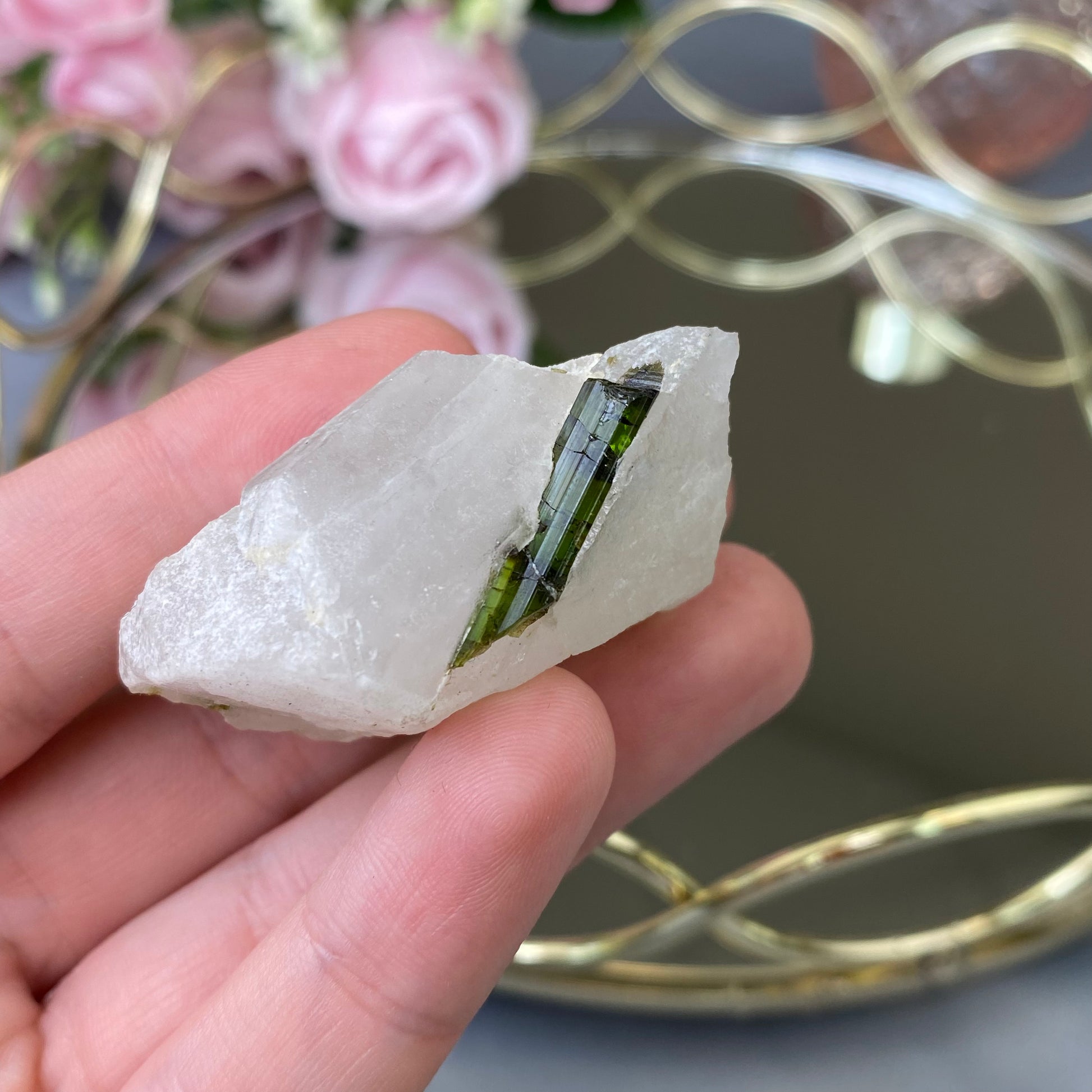 Natural Green Tourmaline in Quartz