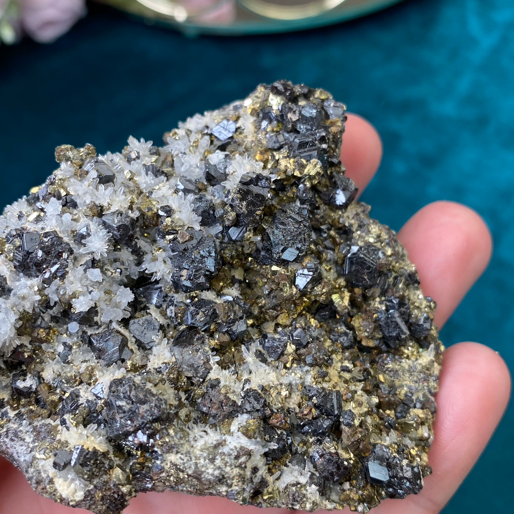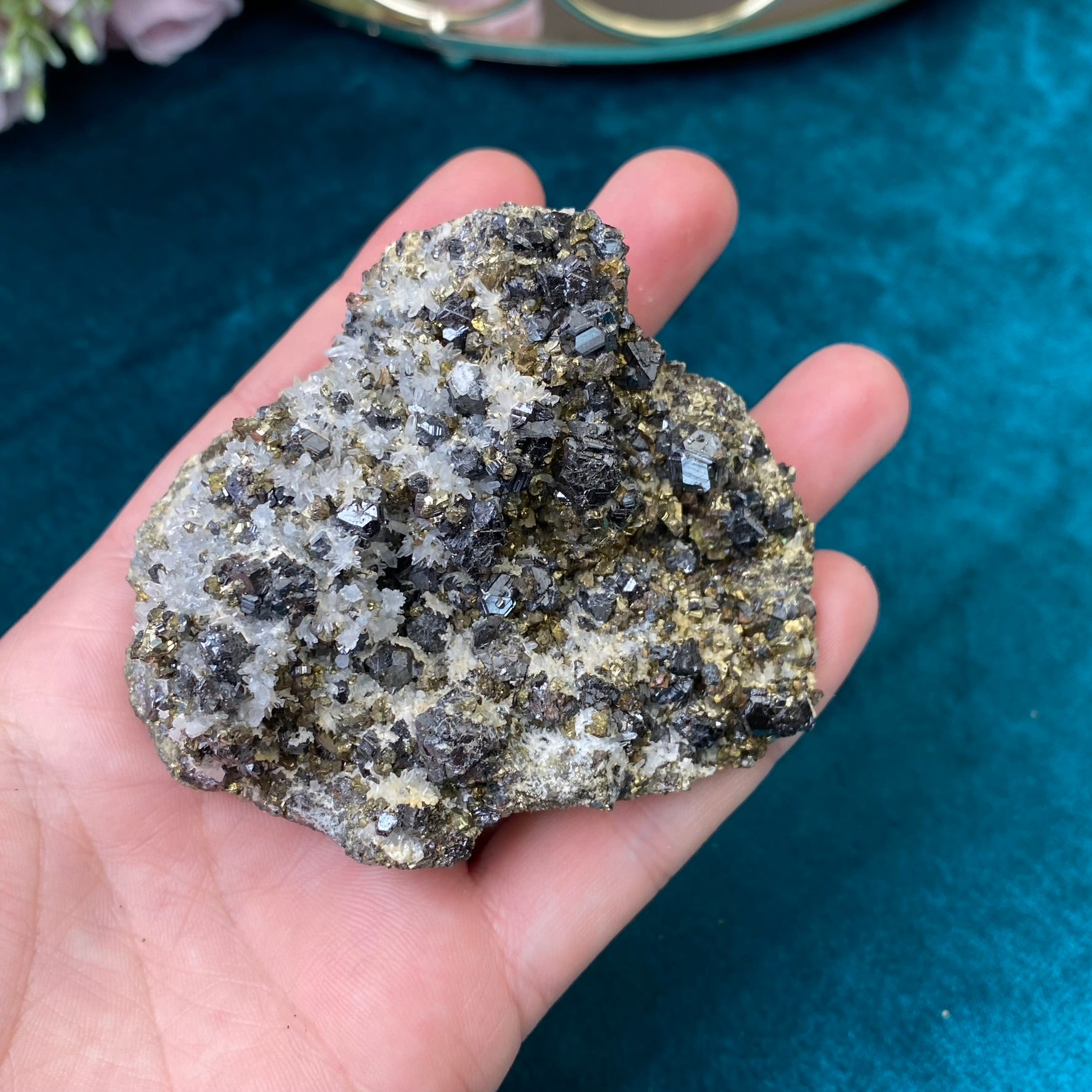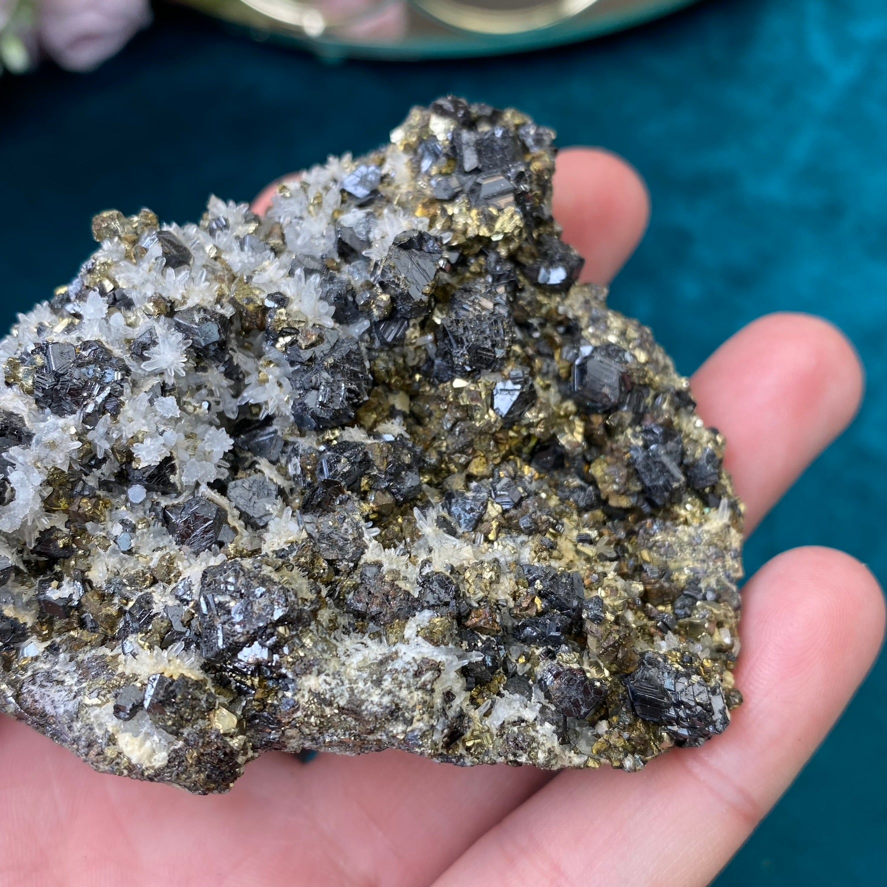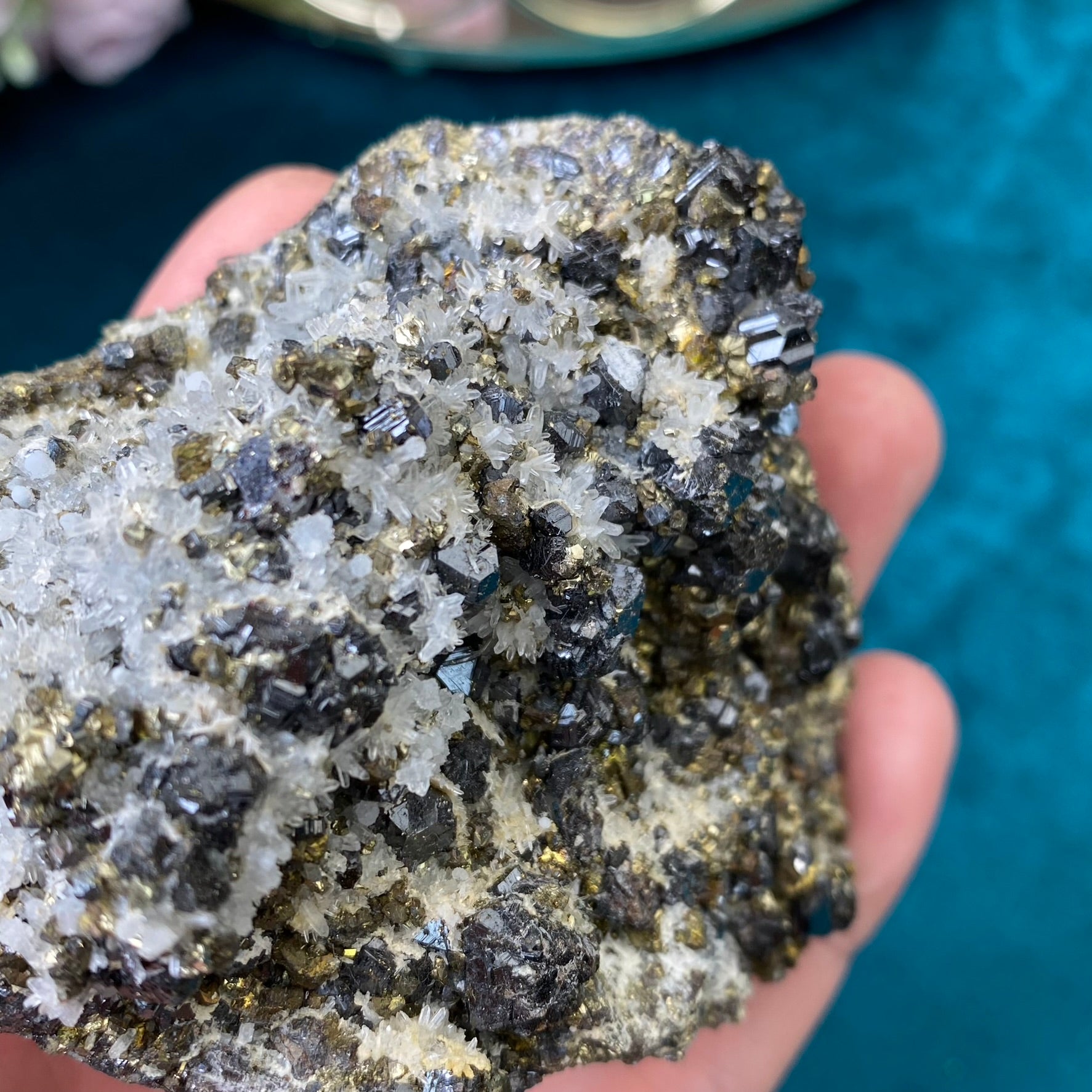 Natural raw Pyrite, Galena, Sphalerite and Clear Quartz 269g.