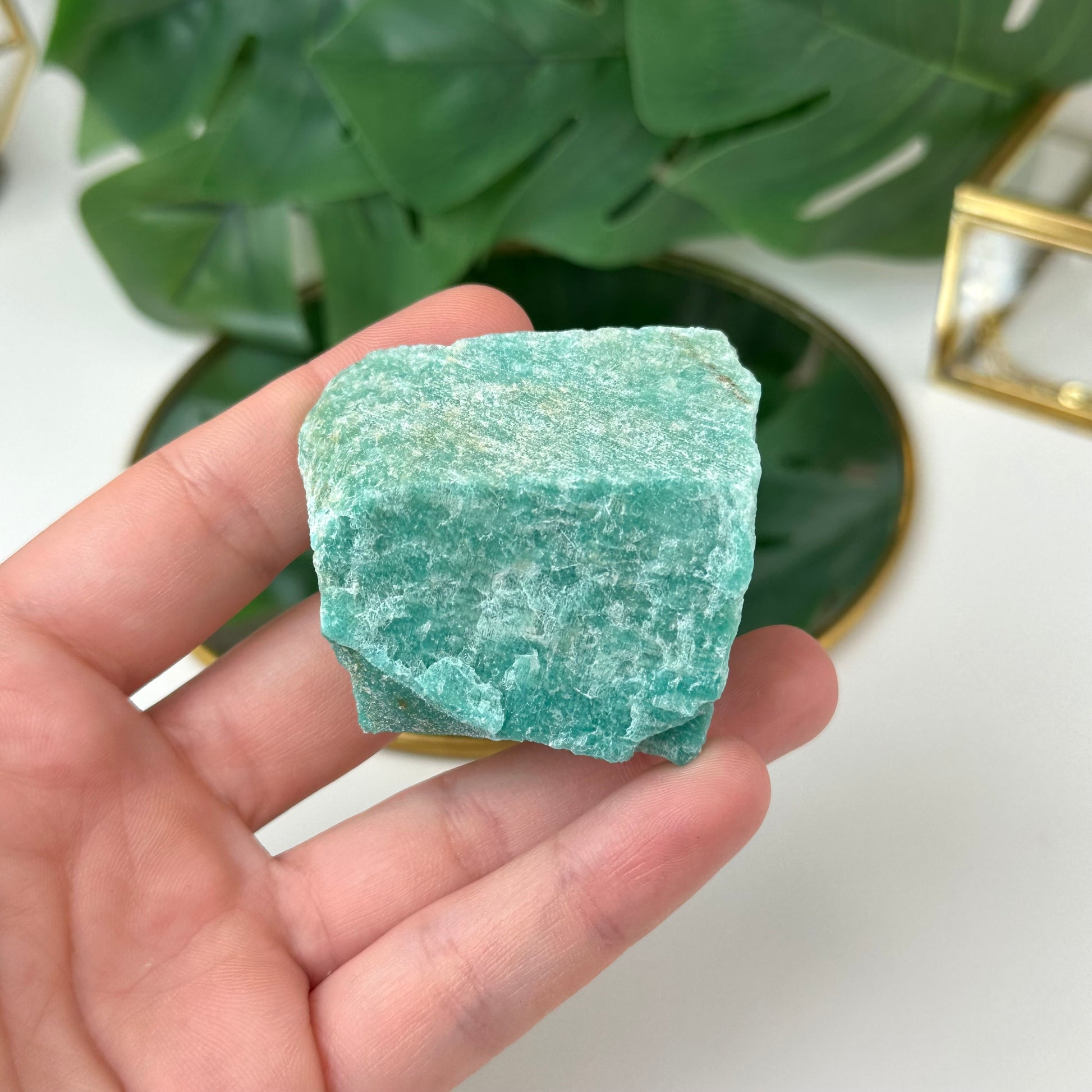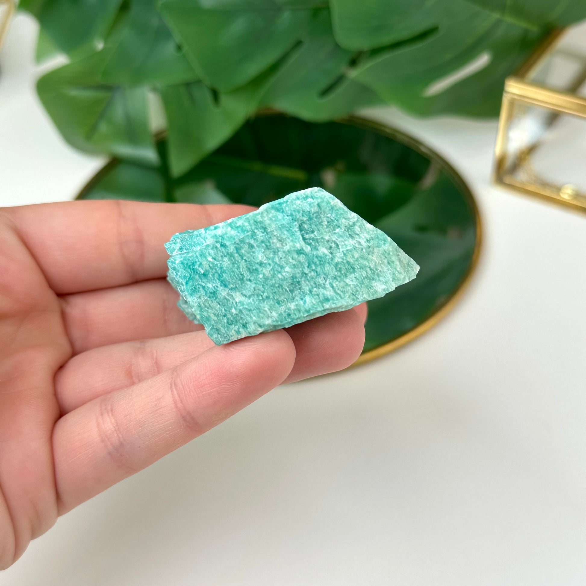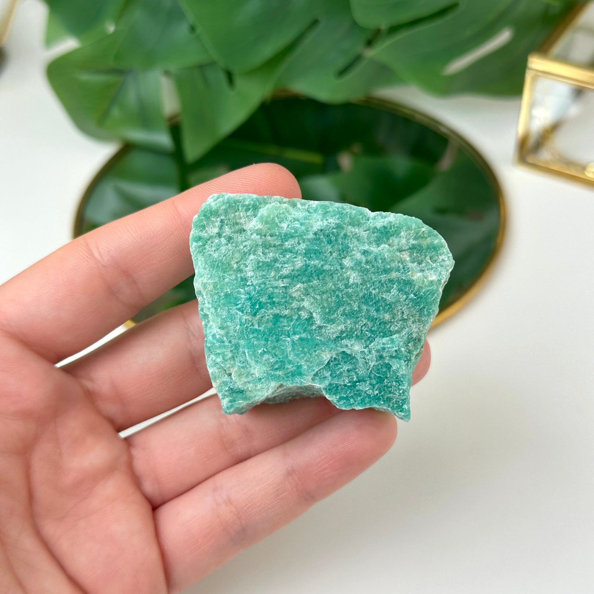 Amazonīts ir dabisks akmens ar maigu zaļgani-zilganu toni, kas simbolizē mieru, saskaņu un iekšējo līdzsvaru.