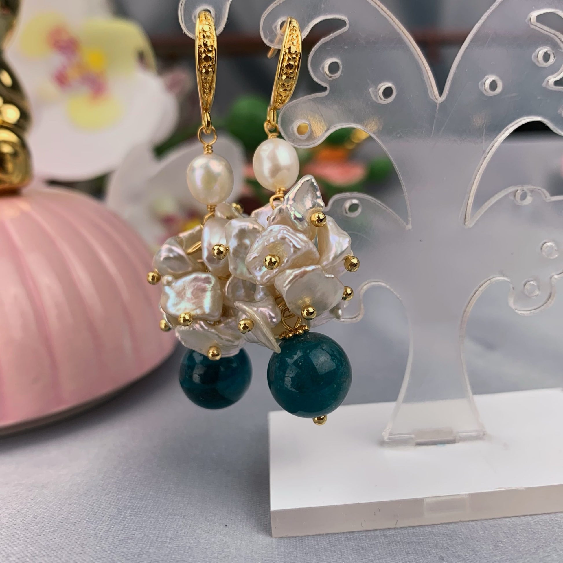 River Pearl and Kyanite earrings (River pearls, Kyanite)