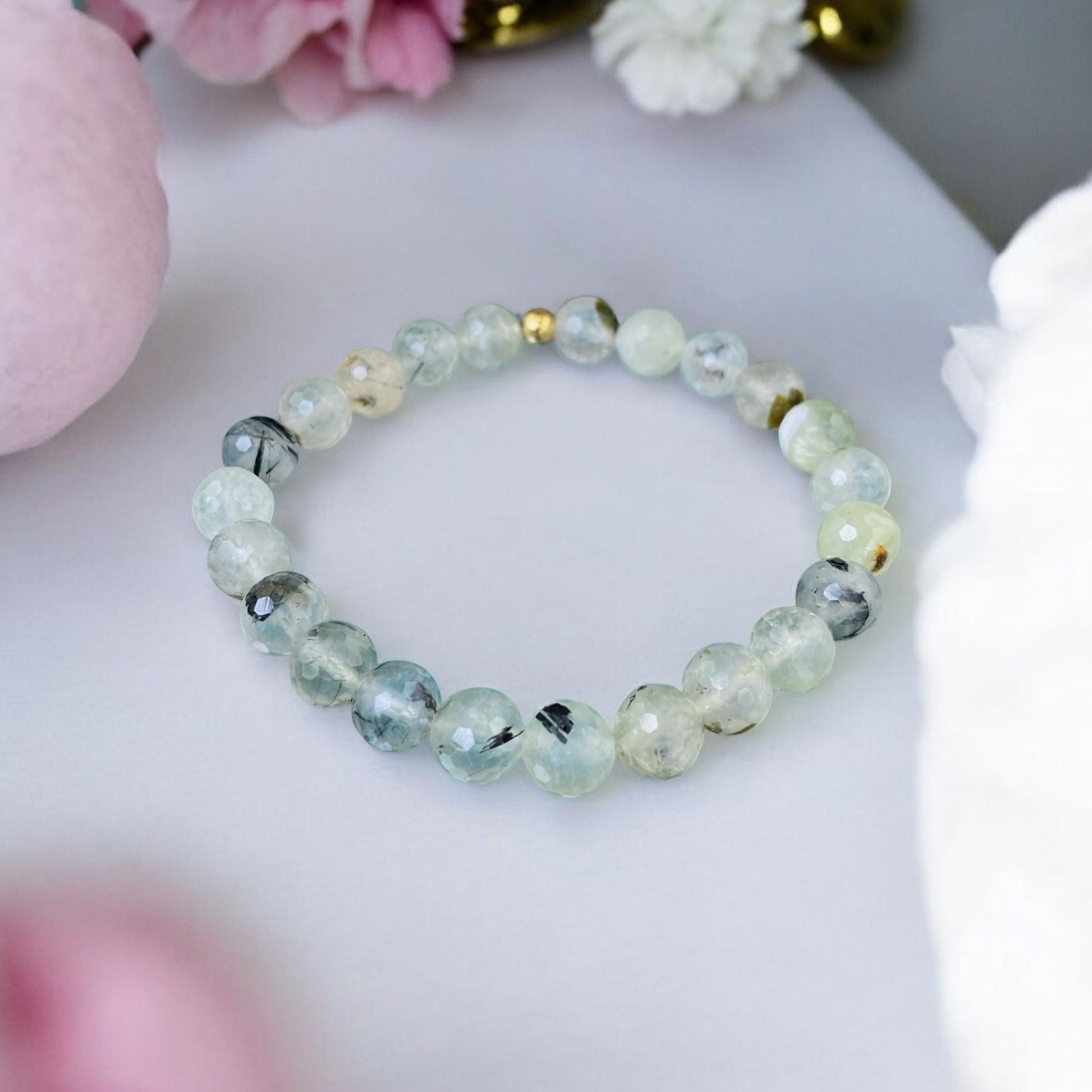 Prehnite bracelet (Prehnite, polished shape, 8mm. For energy, joy and dreams come true.)