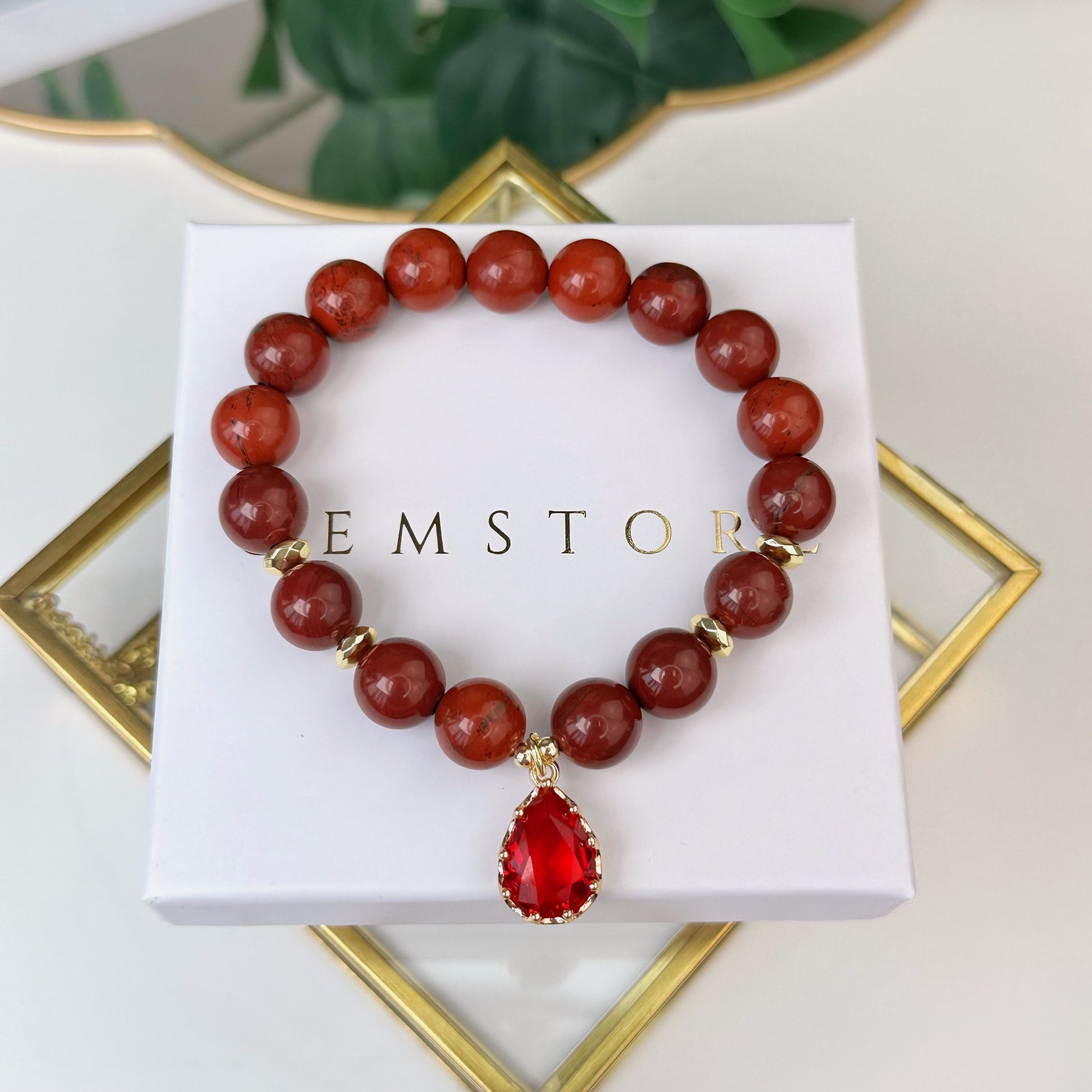 Sarkanās Jašmas rokassprādze (Jašma, 10mm. Aizsardzībai, drosmei un radošumam.)