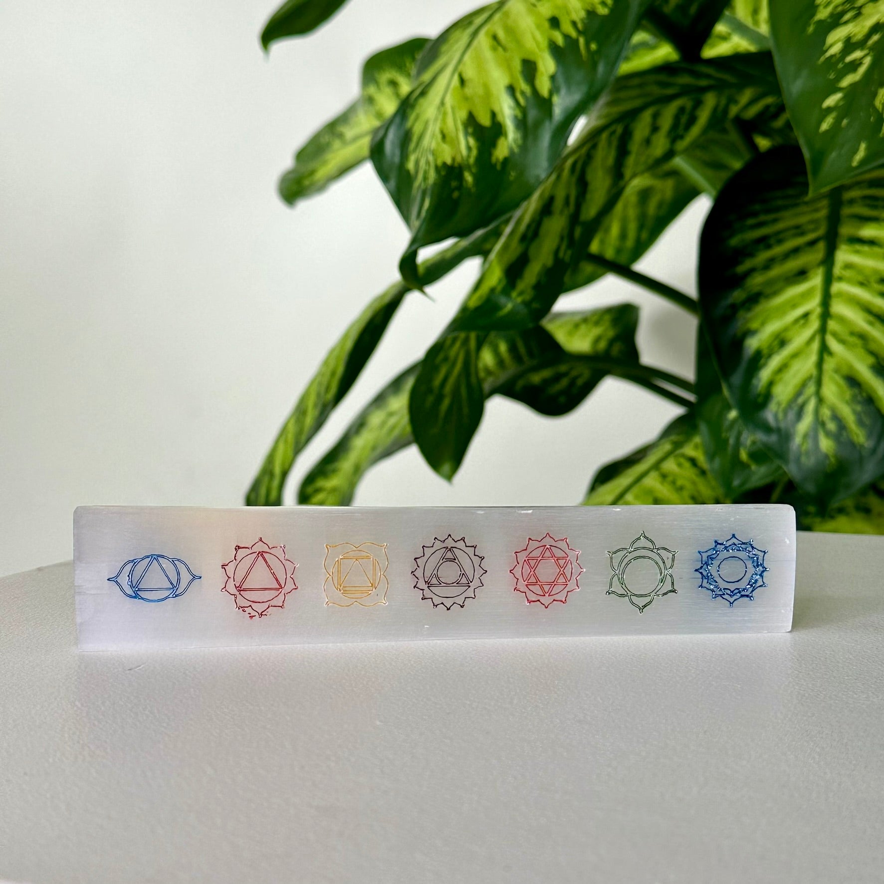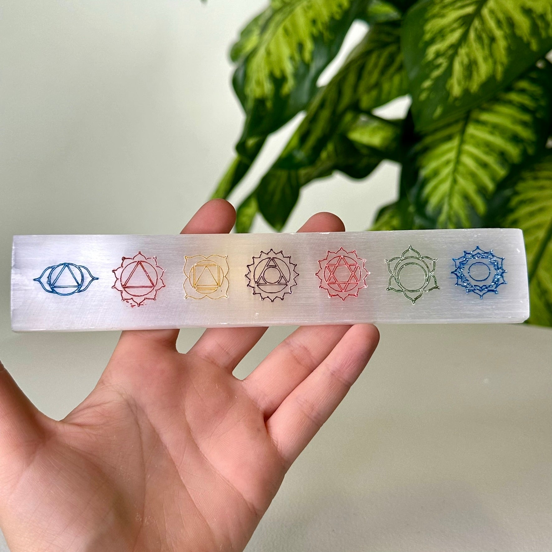 Selenīta uzlādes paliktnis "7 Čakras" (Selenīts, ~19.5cm)