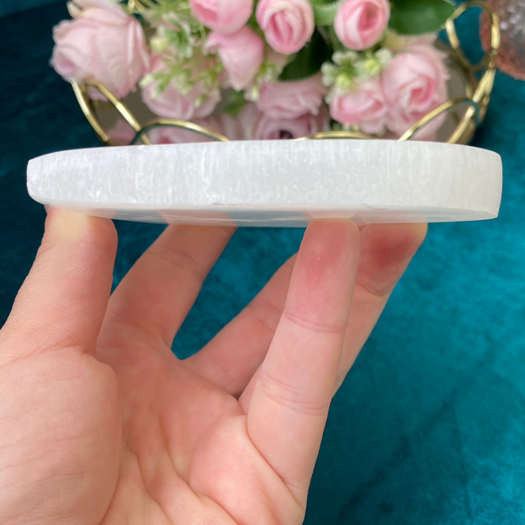 Using selenite is a great way to cleanse your crystals, recharge their energy and amplify the effects of the crystals. Crystals should be cleaned frequently to remove negative or stagnant energy. If we use our crystals regularly, they can absorb negative energy and become 'blocked'. Crystals that you use quite often should be cleaned once a week, while crystals that are used less frequently should be cleaned and charged once a month. Simply place crystals or jewelry on the Selenite pad and leave for 24 hours. We recommend keeping the crystals you use daily on a Selenite pad at all times to ensure continuous cleaning.