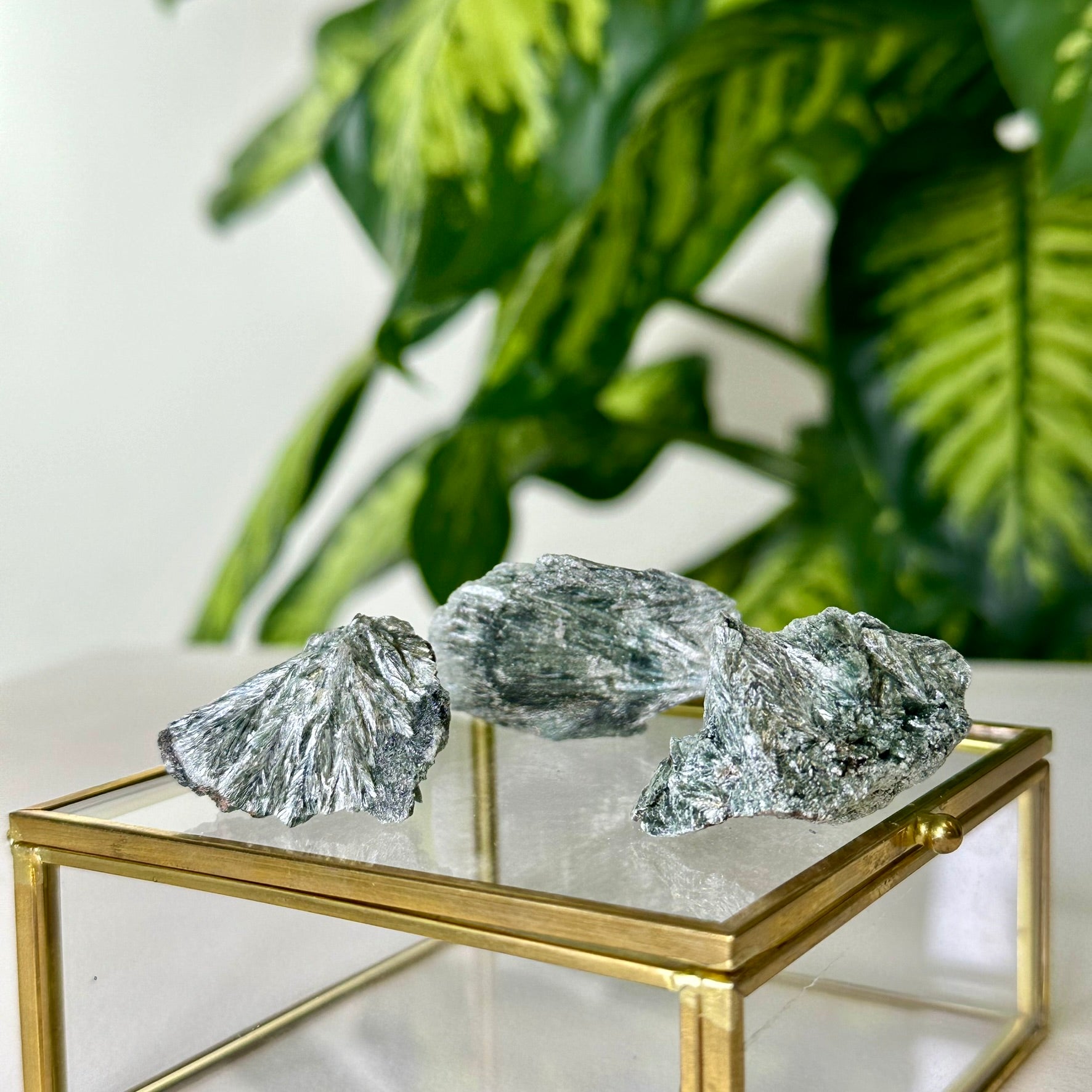 *Tiks izsūtīts 1gab. Serafinīts. Aptuvenais kristāla garums 3-4.5cm. Katrs dabīgais akmens ir unikāls eksemplārs, tādēļ var nedaudz atsķirties no attēlā redzamajiem -krāsa, tekstūra, forma, kristālu skaits u.c.