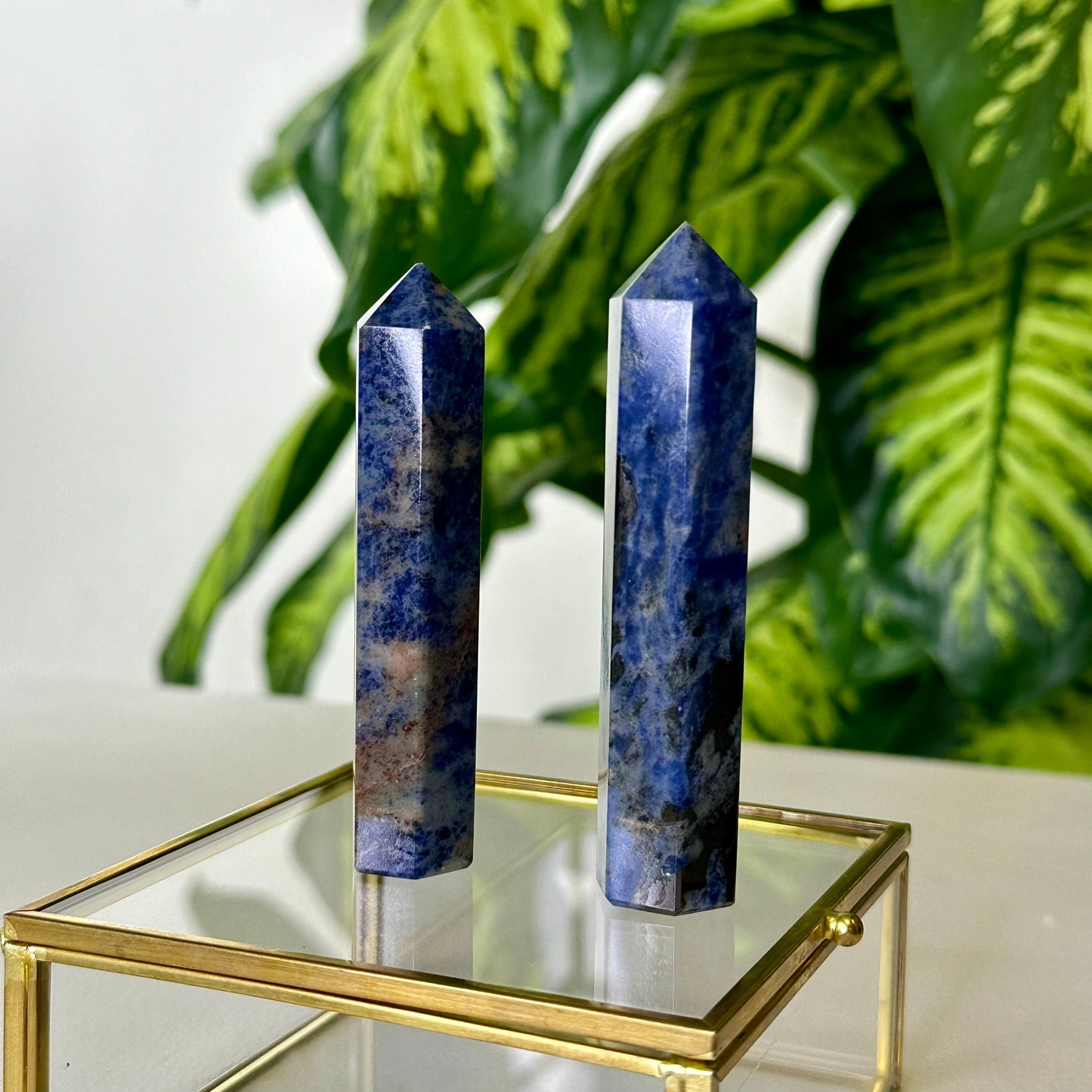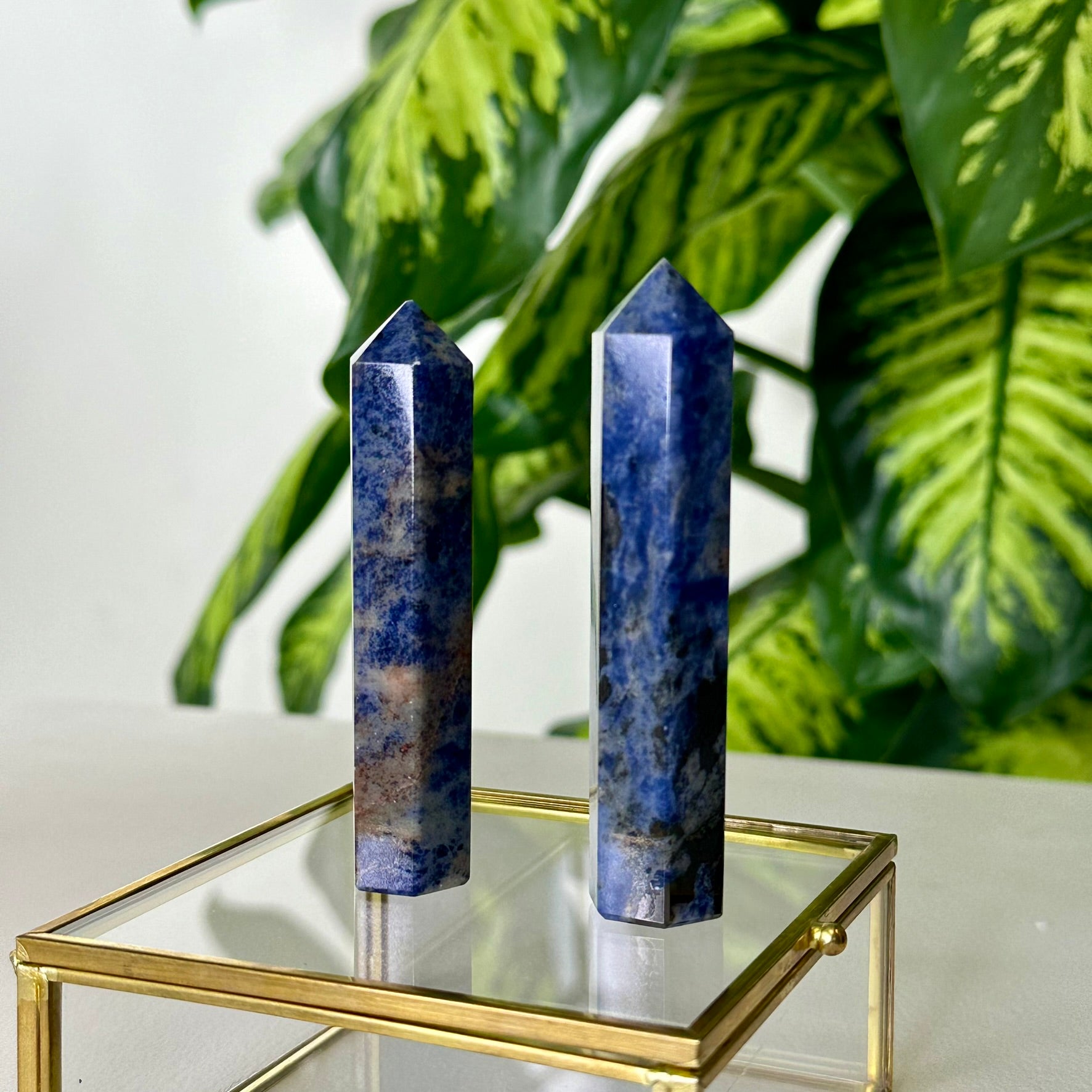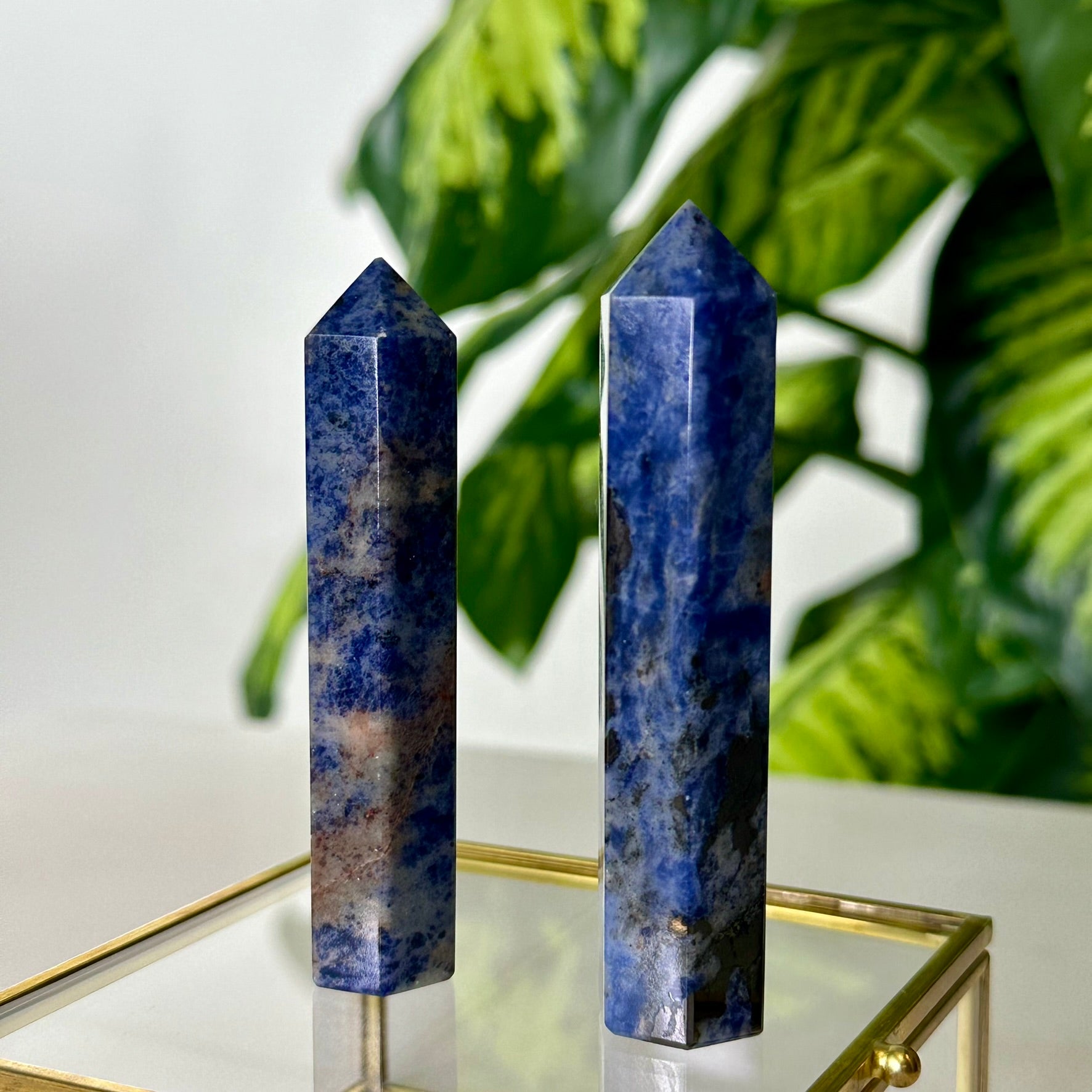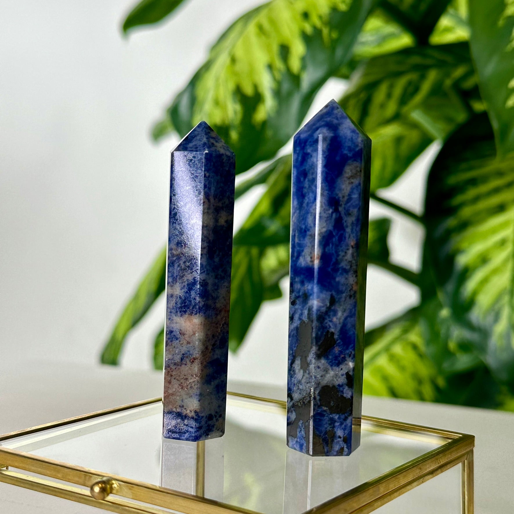 *Tiks nosūtīts 1 gab. Sodalīta tornis. Aptuvenais augstums ~8.8-9.2cm. Katrs dabīgais akmens ir unikāls eksemplārs, tādēļ var nedaudz atsķirties no attēlā redzamajiem -krāsa, tekstūra, forma, kristālu skaits u.c.